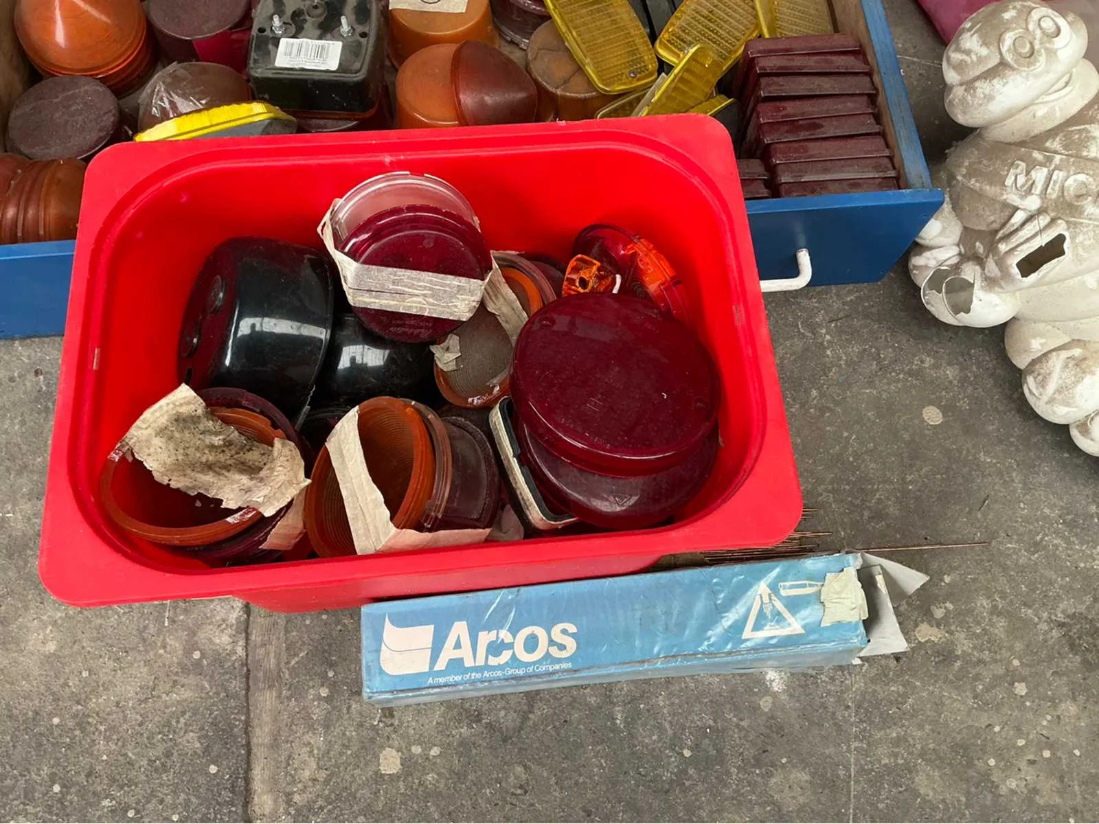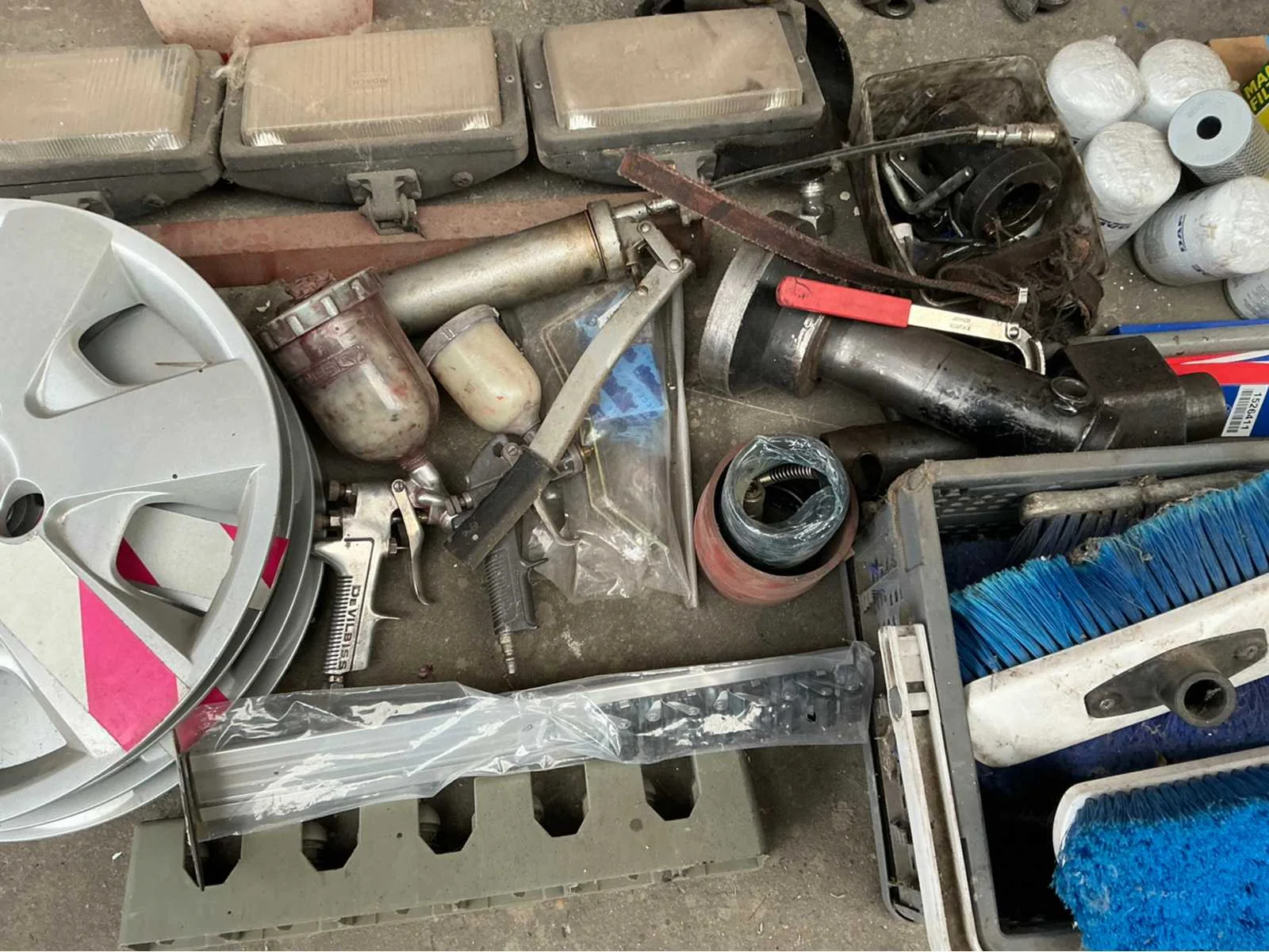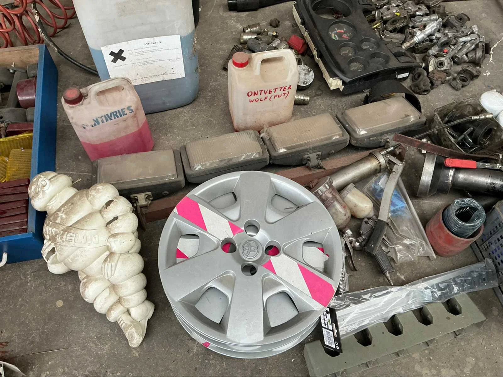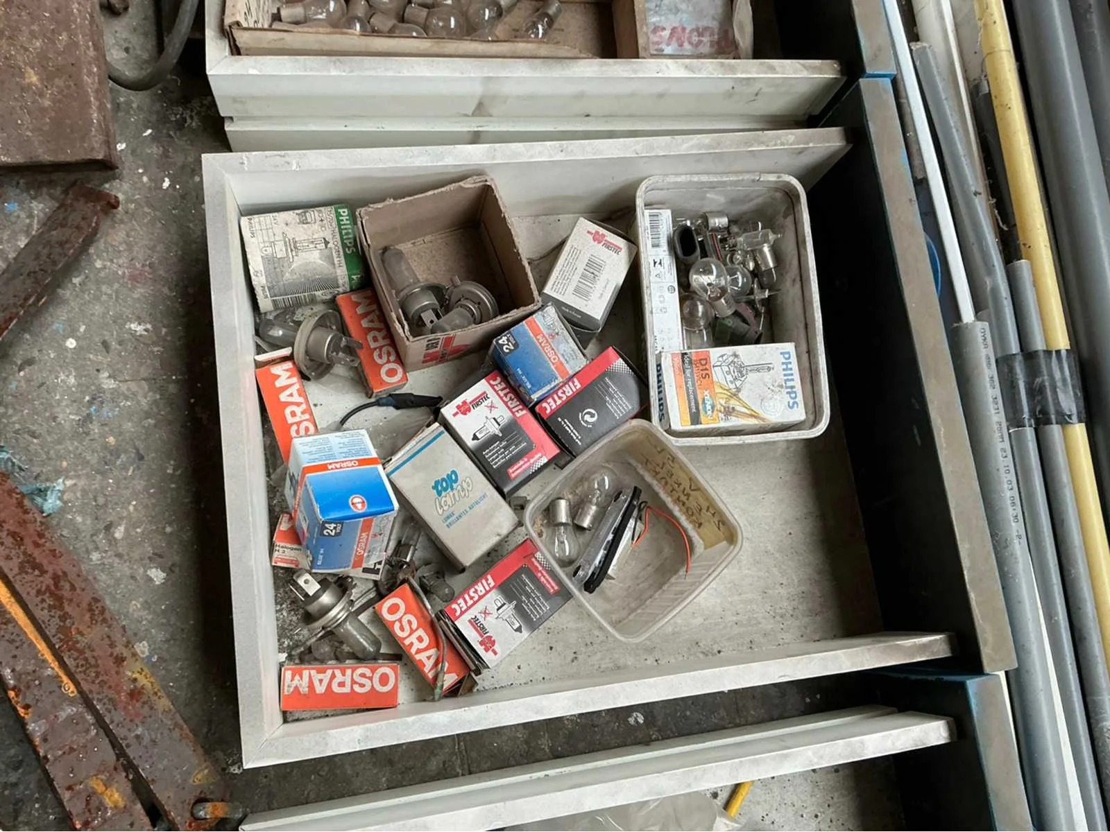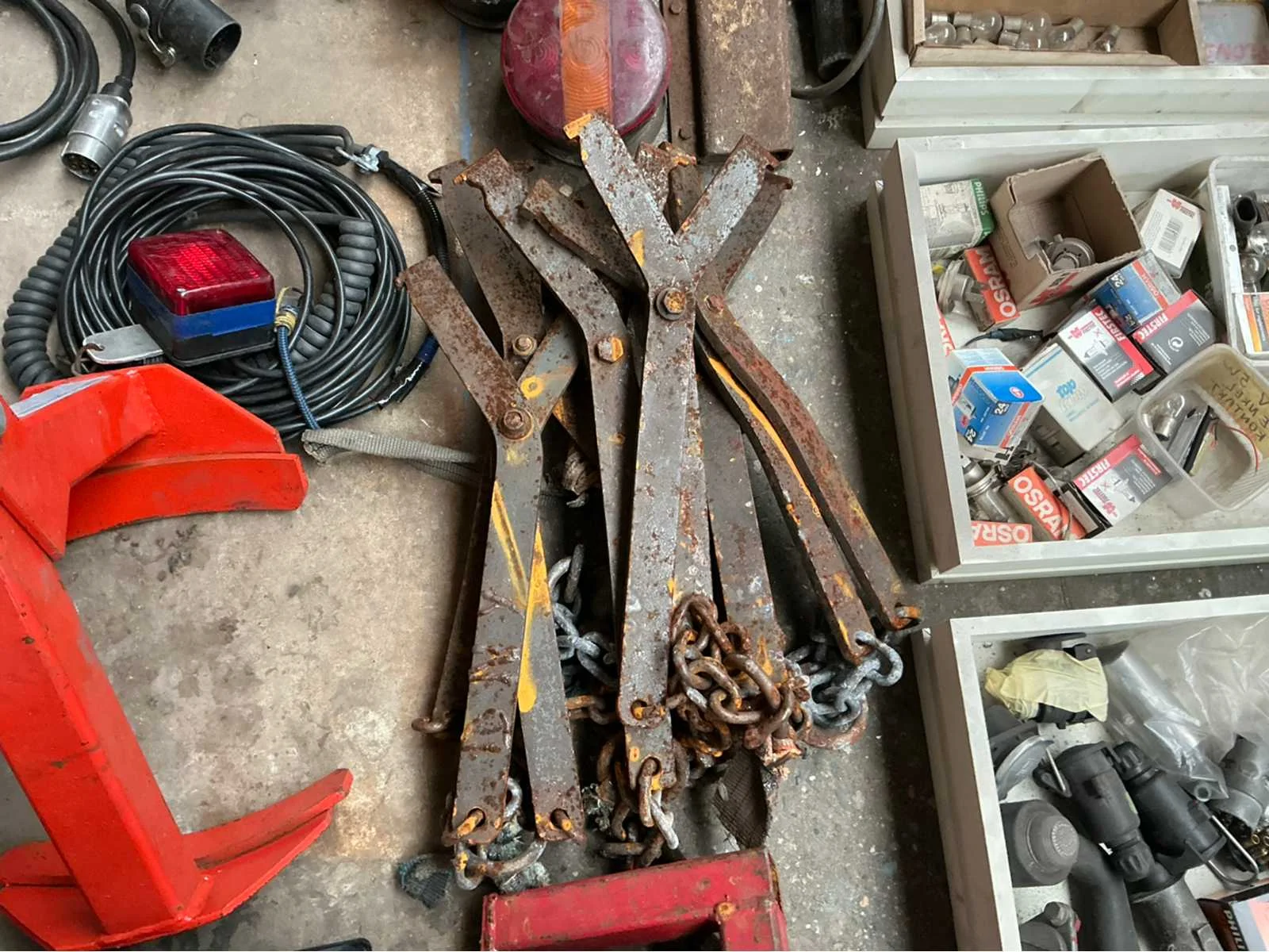Groot lot vrachtwagen onderdelen waaronder lichten, filters, kabels en slangen, spanners, containervergrendelingen, luchtkoppelingen, ventielen, kentekenplaathouders,… Nee