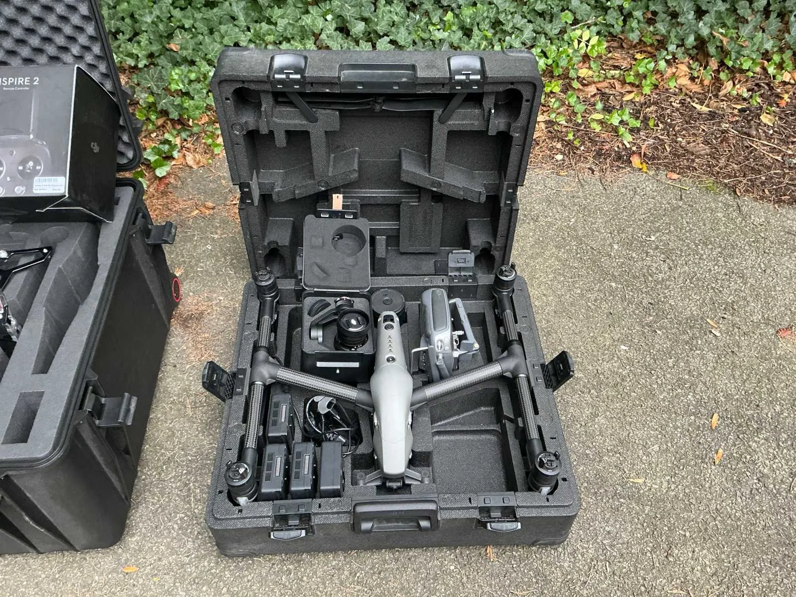 Professionele DJI Inspire 2 drone met X5s camera. Bouwjaar tussen 2018 en 2020. Volledig met koffer, reservebatterijen, batterijlader + extra box met onder andere propellers, charging hub, remote control case,… Alles werkt. Nee Merk: DJI Type: Inspire 2 X5s