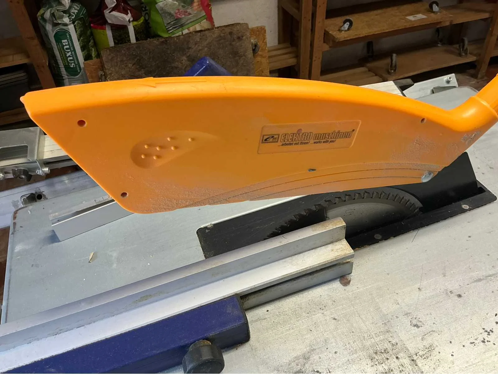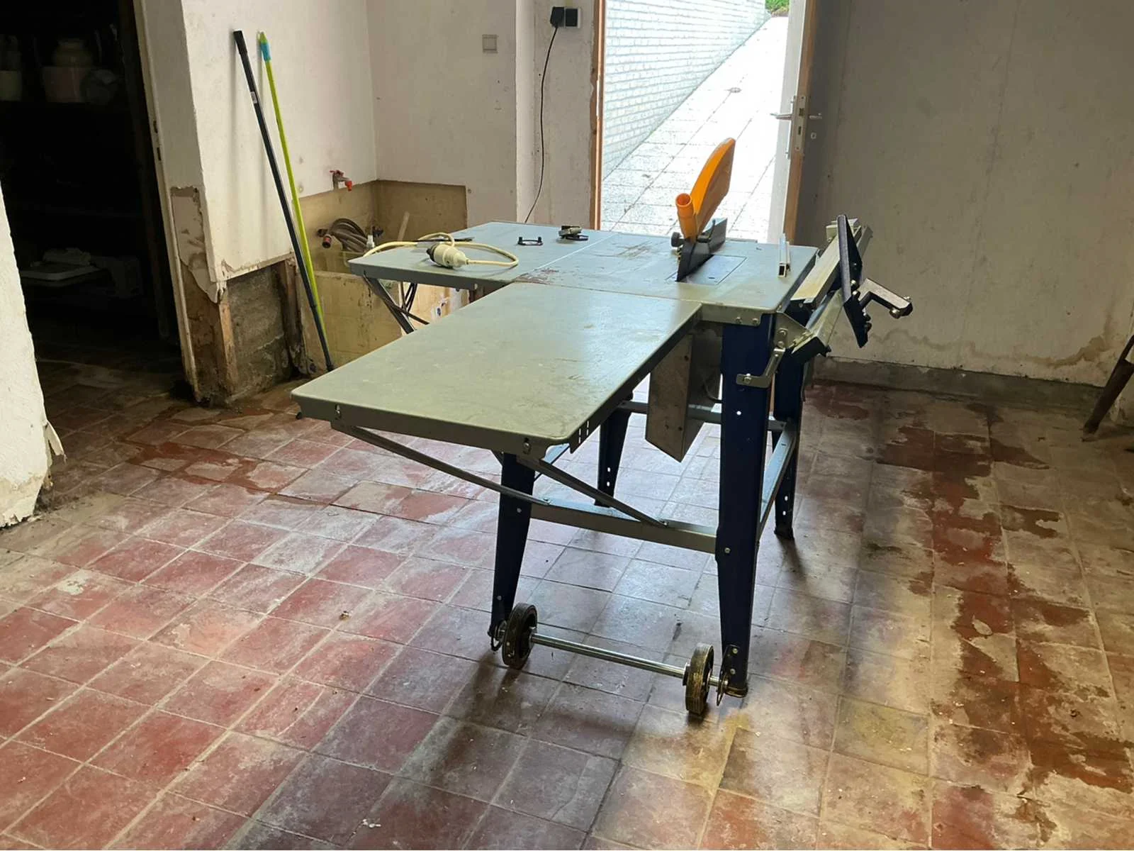 Uit professionele werkplaats aangeboden: degelijke en krachtige Elektro Maschinen TSEm 315 Profi Line tafelzaag, ontworpen voor precisiewerk in houtbewerking en renovatie. De machine is voorzien van een sterke 2,5 kW motor (230V) en een zaagblad van 315 mm, waarmee moeiteloos houten platen, balken en panelen op maat kunnen worden gezaagd. De tafelzaag beschikt over een verstelbaar zaagblad voor zowel hoogte als hoek, en is uitgerust met een parallelgeleider en hoekgeleider voor nauwkeurig en veilig werken. Dankzij de stabiele metalen constructie en de uitschuifbare tafelbladen links en rechts is deze machine uitermate geschikt voor het zagen van grotere werkstukken. De veiligheidskap, het noodstopmechanisme en het rolonderstel met wielen zorgen voor extra gebruiksgemak en veiligheid. De machine verkeert in goede, gebruikte staat en is volledig functioneel. Nee Merk: Elektro Maschinen Type: TSEm 315 Profi Line Aansluiting: 230V