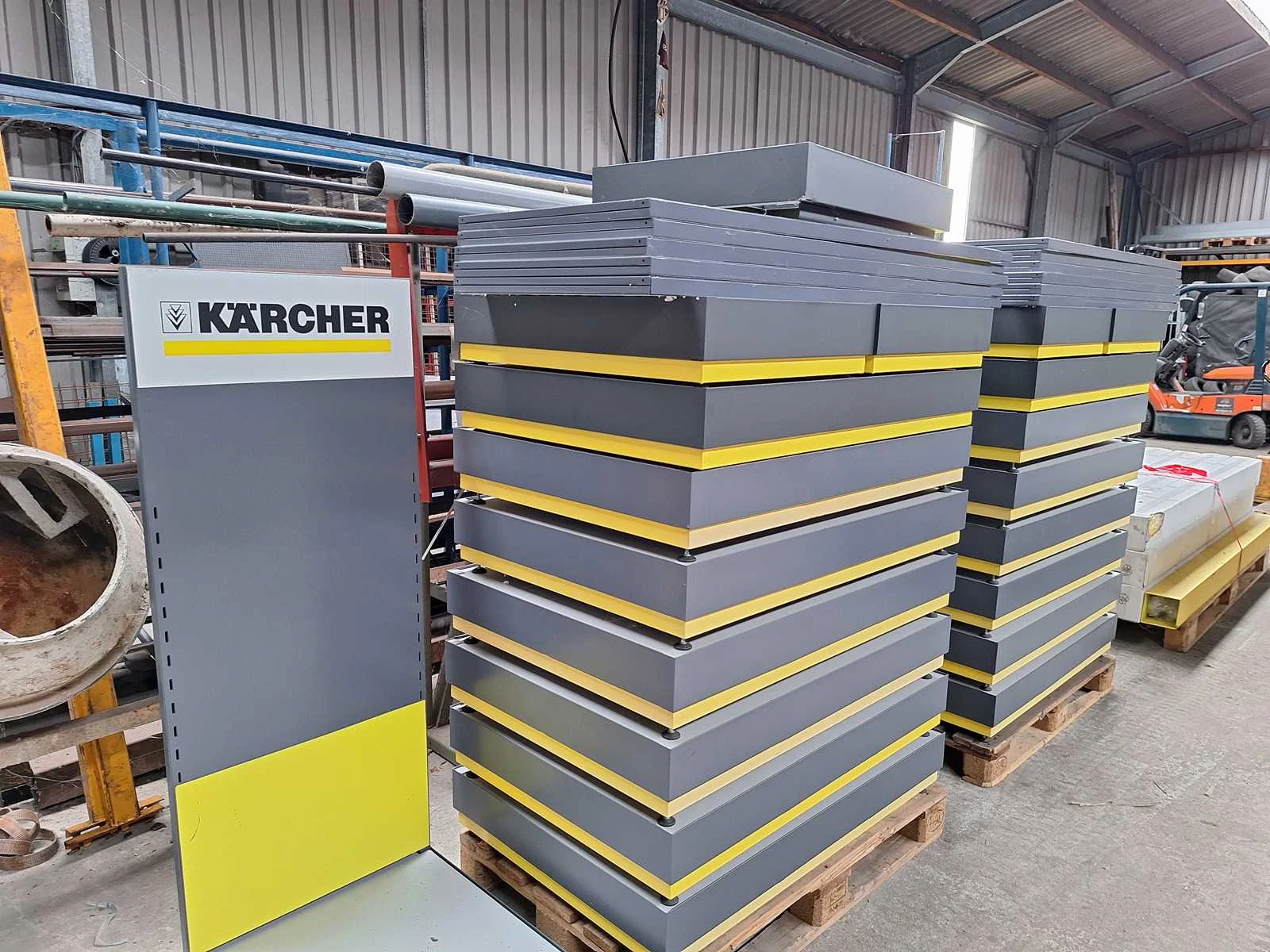 Presentatierek ( nu karcher ) voor in winkel / museum / tentoonstelling 2 palleten +- 20 stuks Nee