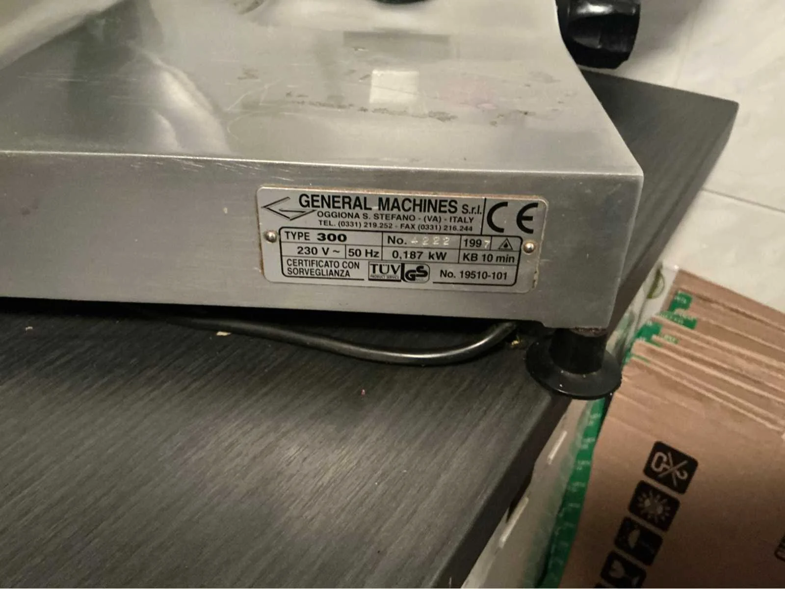 Nee Merk: Vleessnijmachine general machines Type: 300 Serienummer: 4222
