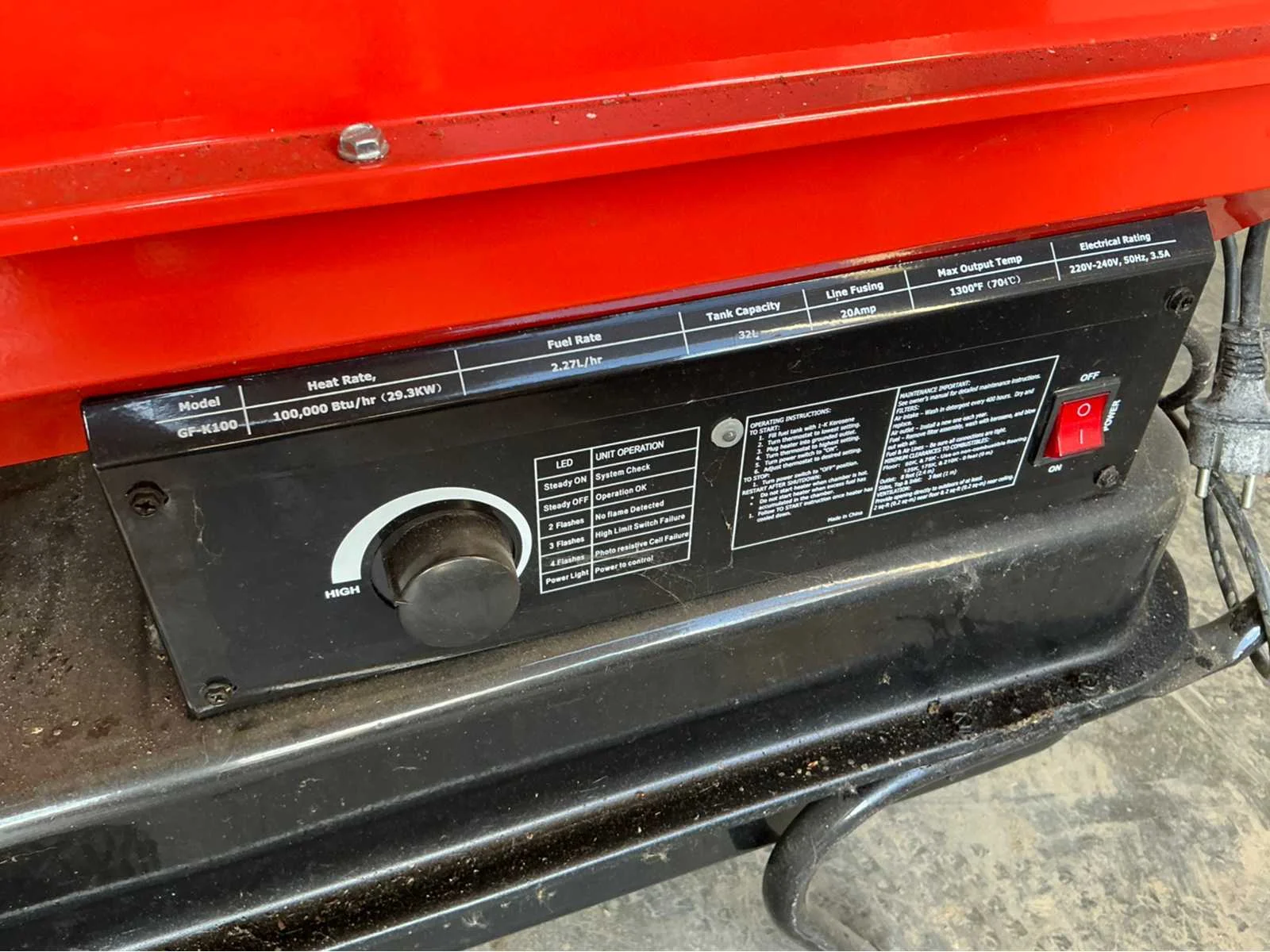 Nee Merk: Topheat Type: Gf K 100 Vermogen: 29.3kW Capaciteit.: 100000BTU/hr Brandstof: Diesel