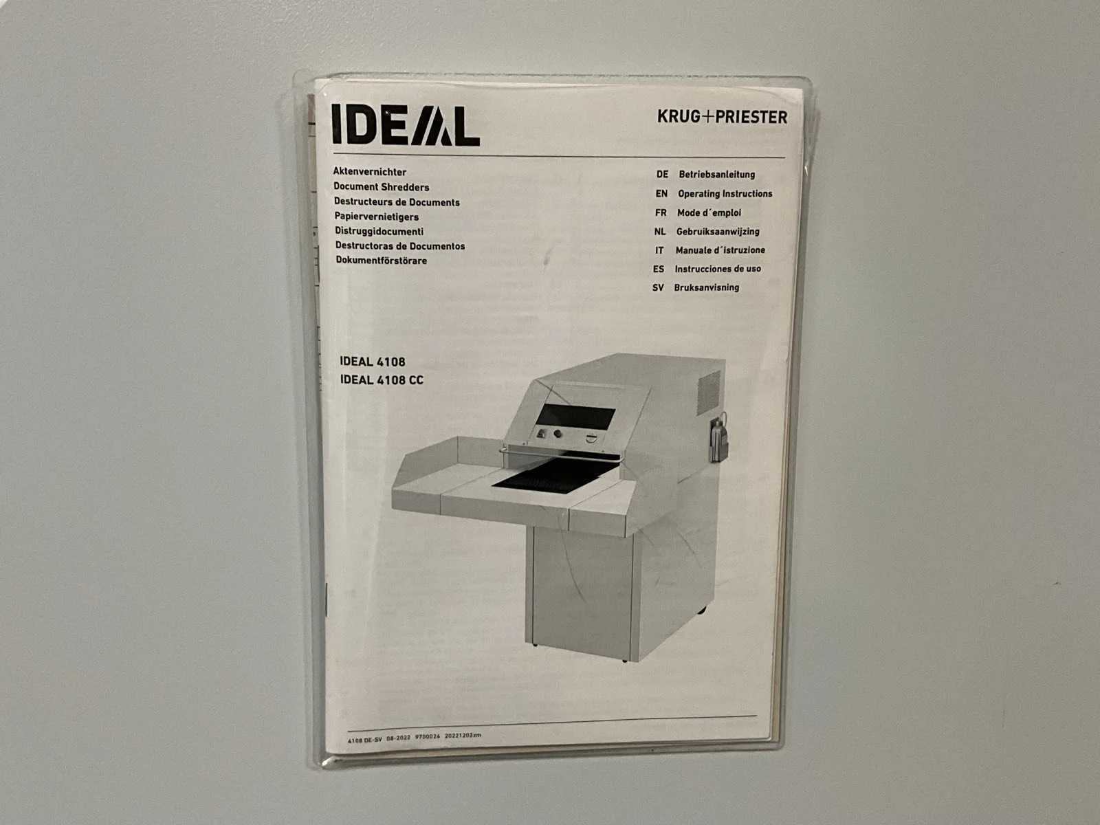 Ideal 4108CC Pro Papiervernietiger - 2023 Machineshowzaal dicht bij nieuwstaat Veiligheidsniveau P5 Driefasig 400v 16a Verkocht in de staat zie foto's Non Merk: Idéal Type: 4108CC 2x15 P5