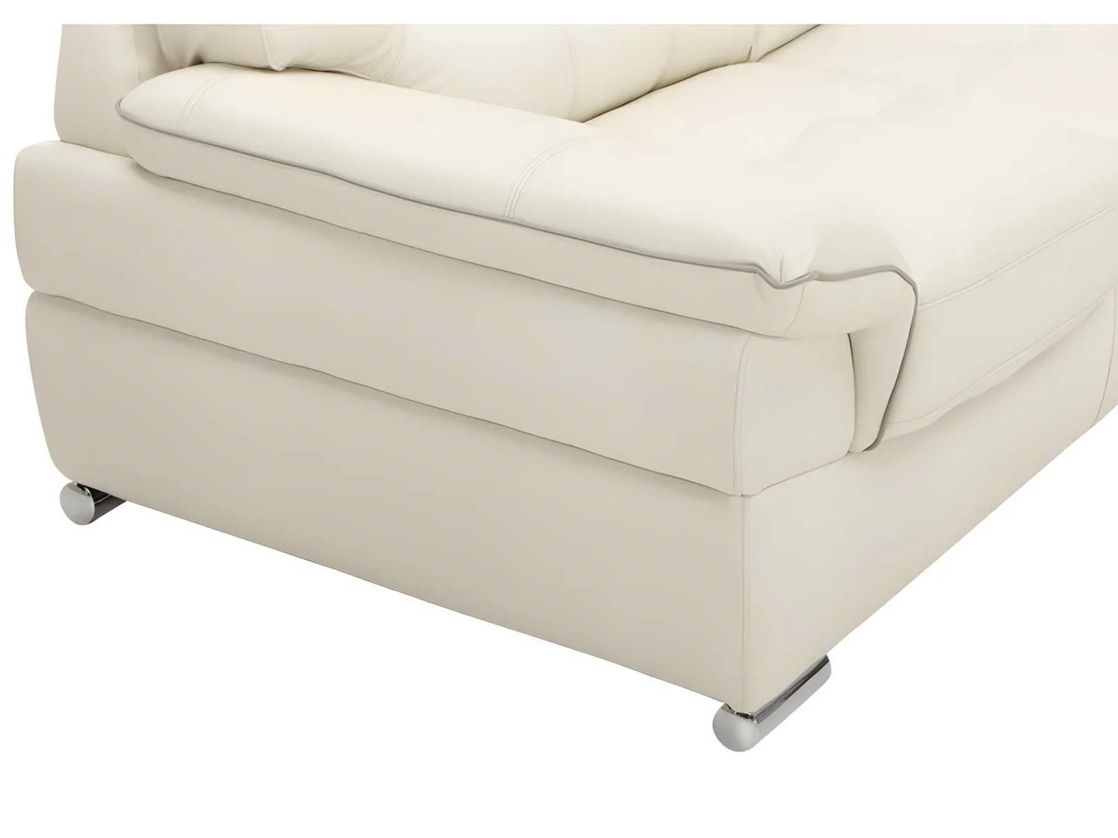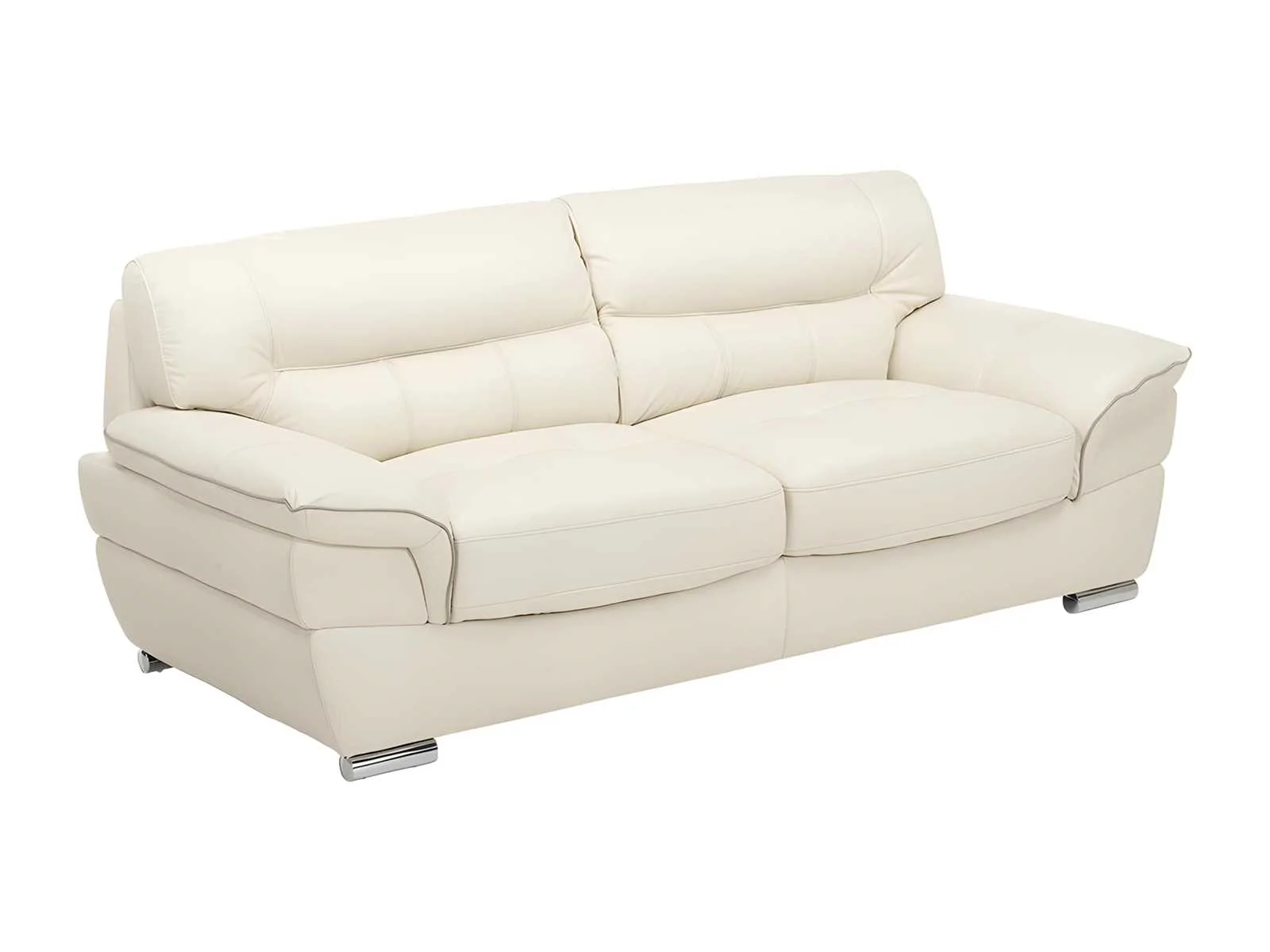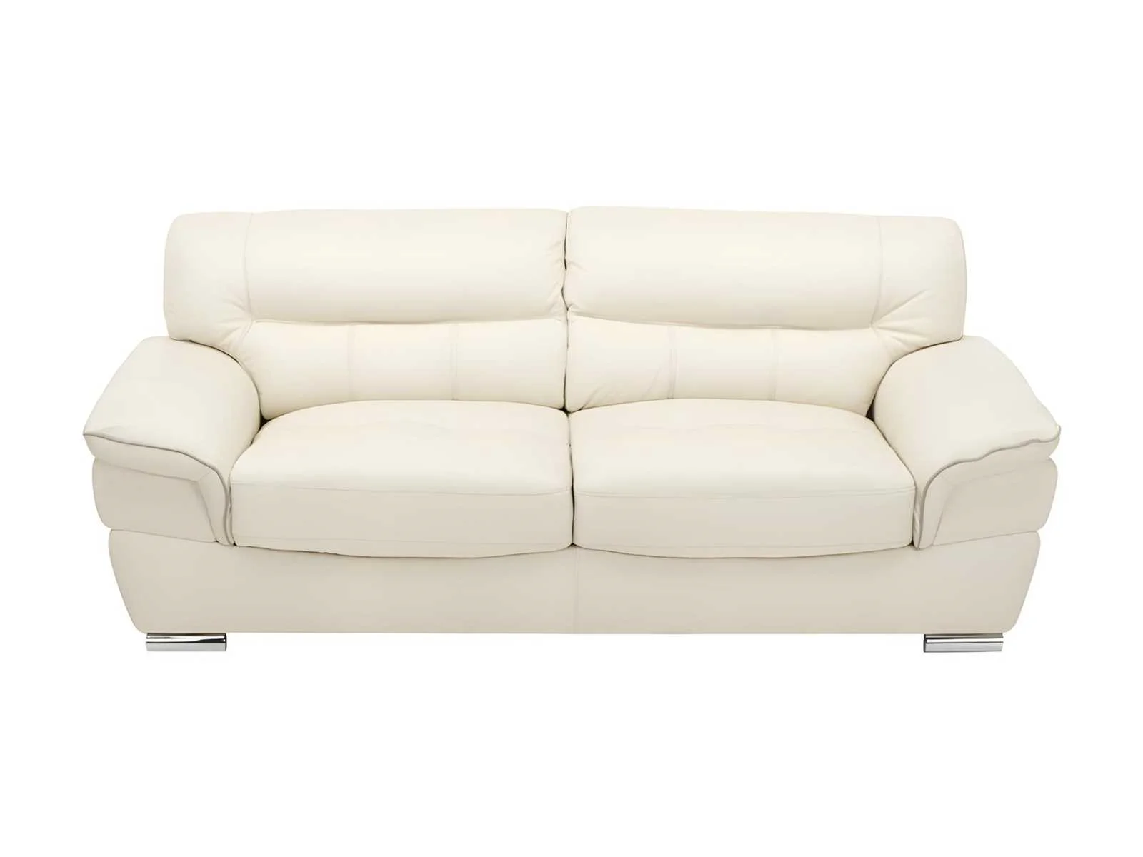 Kenmerken Kleur (schaduw): Ivoor Zaak: Leer Herkomst van het leer: Koeienhuid Leer Kwaliteit leer: Bovenwerk leer Dikte leer: 1,1 tot 1,2 mm Materiaal (basis): Metaal Structuur: Hout Contant geld truc: Vals Afwerking: Gecorrigeerde bloem, chroom zout gelooid Aantal plaatsen: 3 zitplaatsen Bekleding zitting: Polyurethaanschuim met hoge veerkracht Dichtheid zitting: 30 kg/m³ Zadel vering: Gekruiste elastische bandjes Bekleding rugleuning: Dacron Opschorting van het dossier: Gekruiste elastische bandjes Met armleuningen Maximale ondersteunde belasting: 360 kg Gemonteerd geleverd (behalve voeten en/of handgrepen) Grootte Lengte: 210 cm Hoogte: 87 cm Diepte: 93 cm Zithoogte: 45 cm Diepte zitting: 54 cm Non