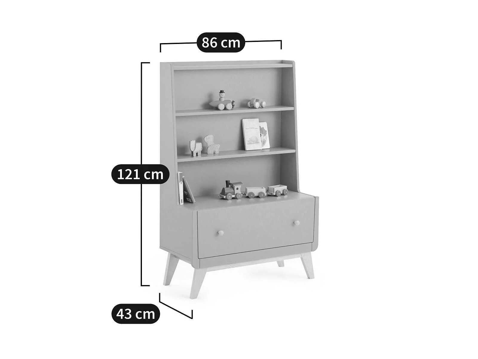 Beschrijving • Boekenkast/plank met 3 opbergnissen en 1 lade • Gelakt MDF met polyurethaan afwerking • voet en handgrepen van massief FSC® berkenhout met geoliede afwerking Kwaliteit • Voldoet aan de huidige veiligheidseisen Grootte Totaal • Breedte: 86 cm • Hoogte: 121 cm • Diepte: 43 cm • Gewicht: 47 kg Non