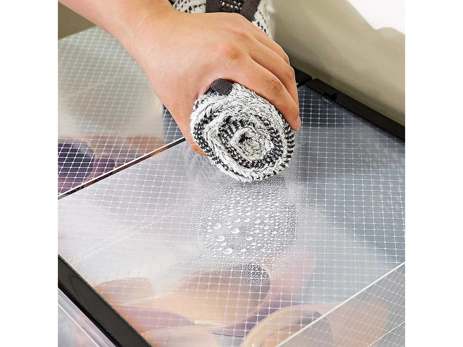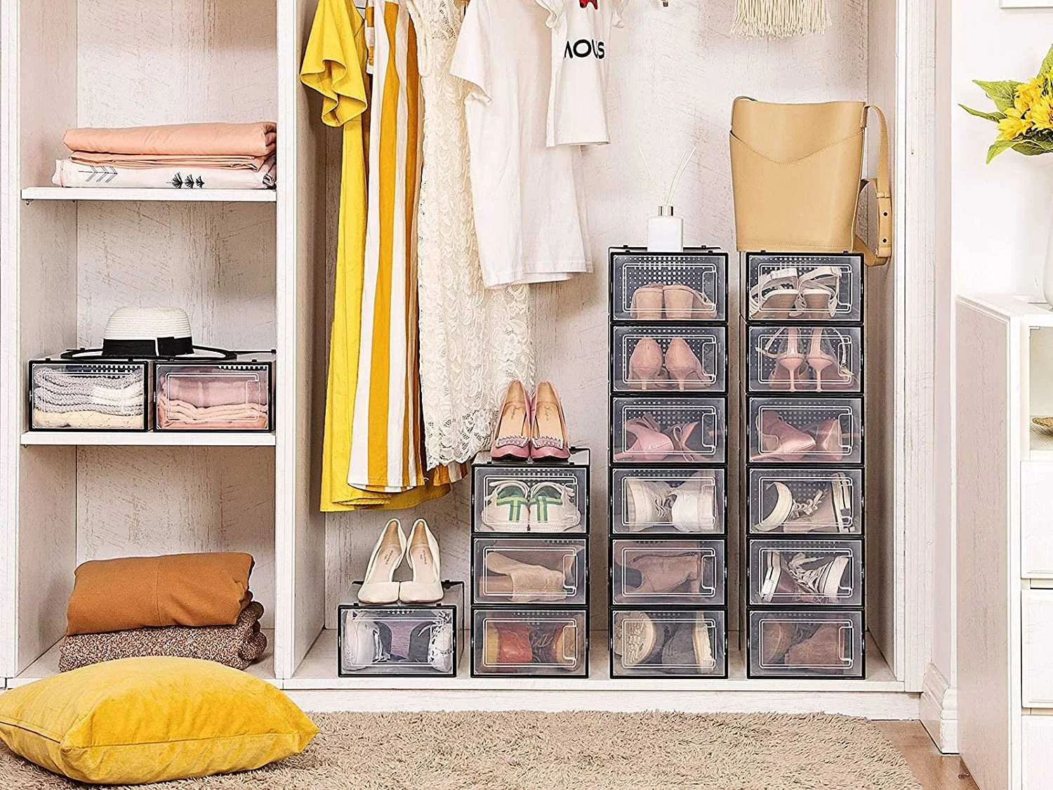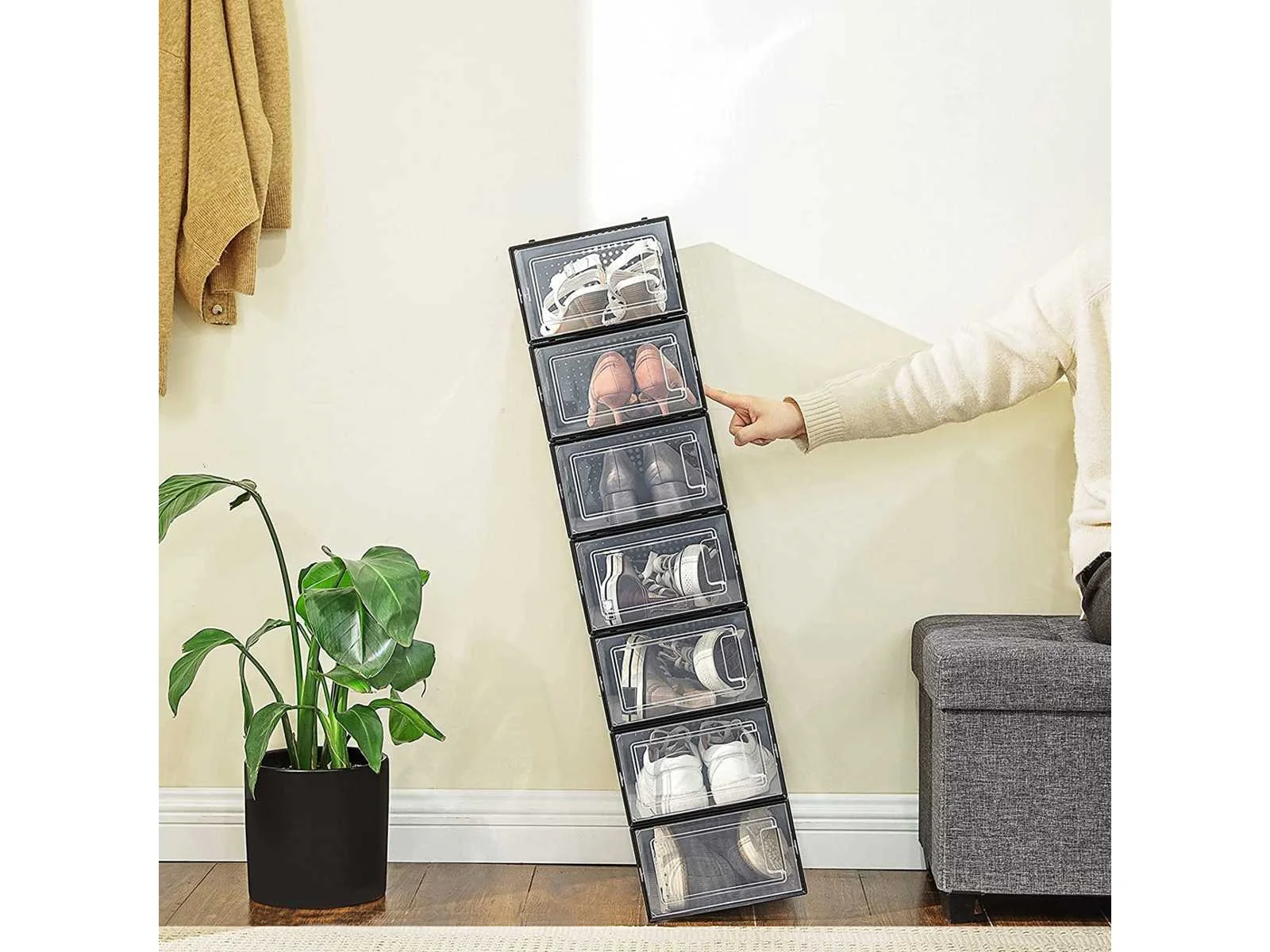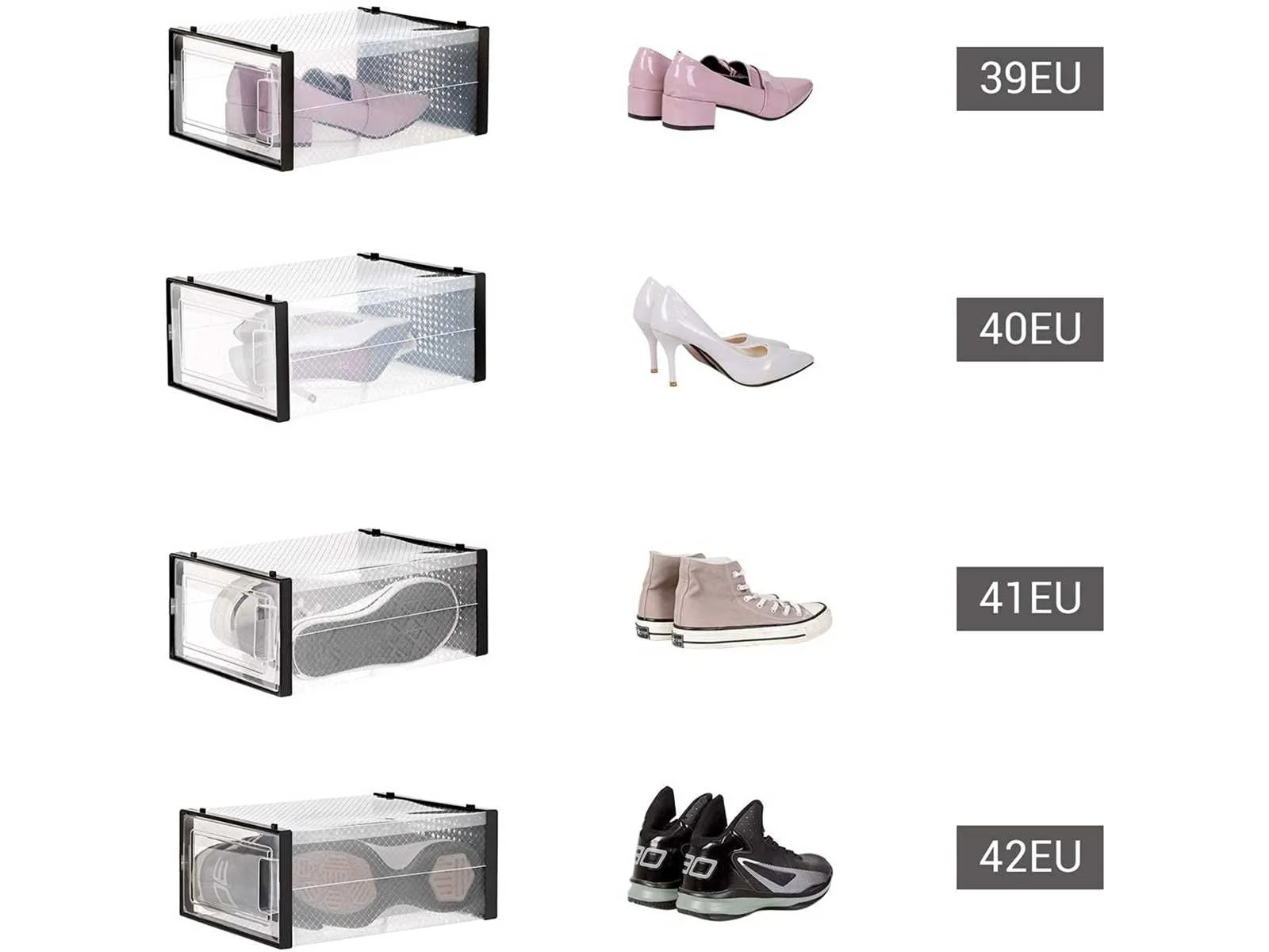 Kenmerken: Kleur: Zwart, transparant Materialen: Polypropyleen kunststof, polystyreen kunststof Externe afmetingen: 33,3 x 23 x 14 cm (L x B x H) Interne afmetingen: 30 x 22,5 x 13,5 cm (L x B x H) Gewicht: 5,3 kg Levering: 18 x Schoenendoos Non