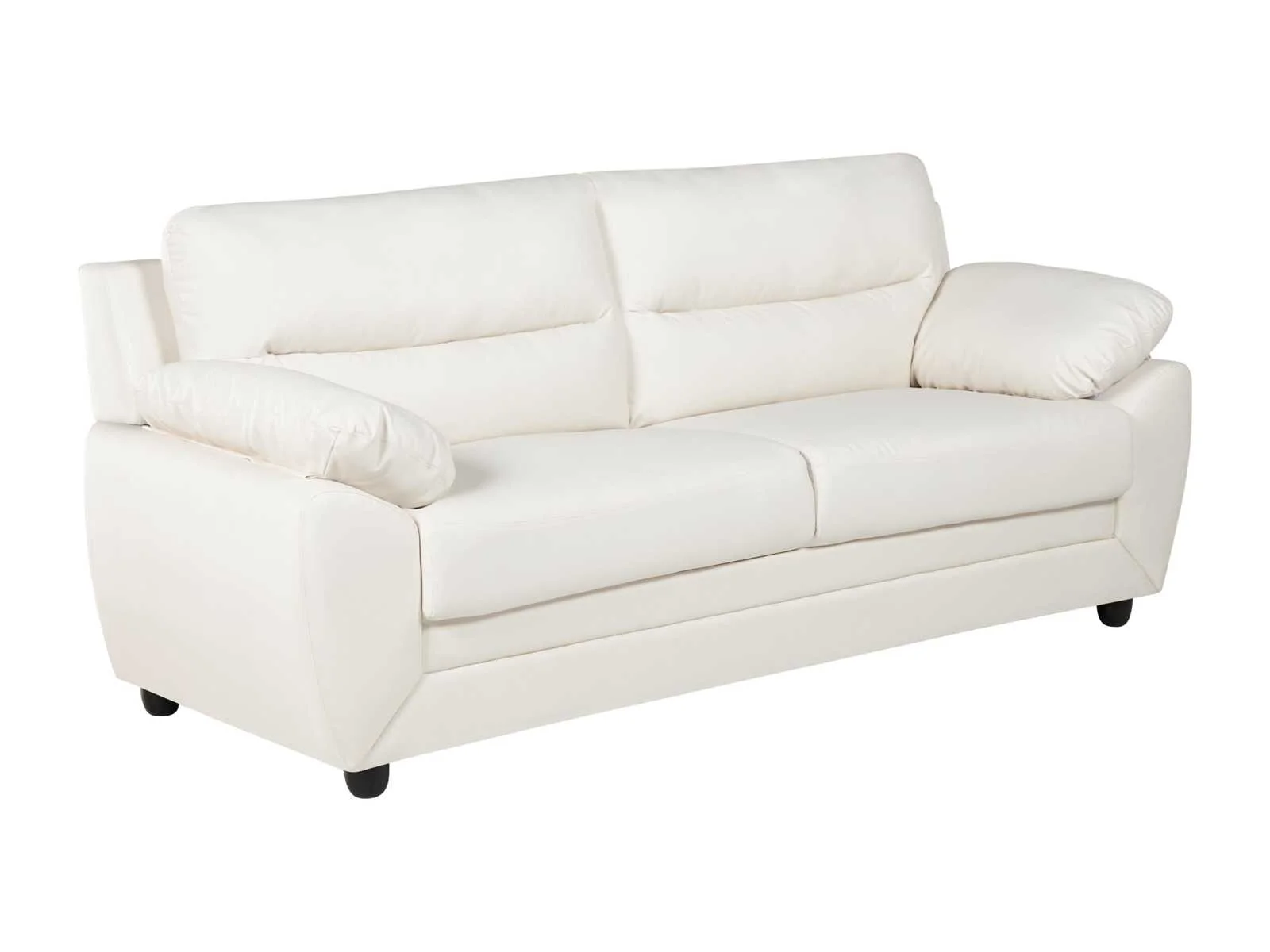 Kenmerken Kleur (schaduw): Wit Materiaal: Imitatie Structuur: Hout, Multiplex Aantal zitplaatsen: 3 zitplaatsen Bekleding zitting: Polyurethaanschuim, Gerecycled polyurethaanschuim Dichtheid zitting: 50 kg/m³ Zadelophanging: Nosag-veren, in elkaar grijpende elastische banden Vulling rugleuning: Polyurethaanschuim Dichtheid rugleuning: 10 kg/m³ Met armleuningen Maximale ondersteunde belasting: 360 kg Zelf in elkaar zetten Grootte Lengte: 201 cm Hoogte: 88 cm Diepte: 82 cm Zithoogte: 46 cm Diepte zitting: 50 cm Non