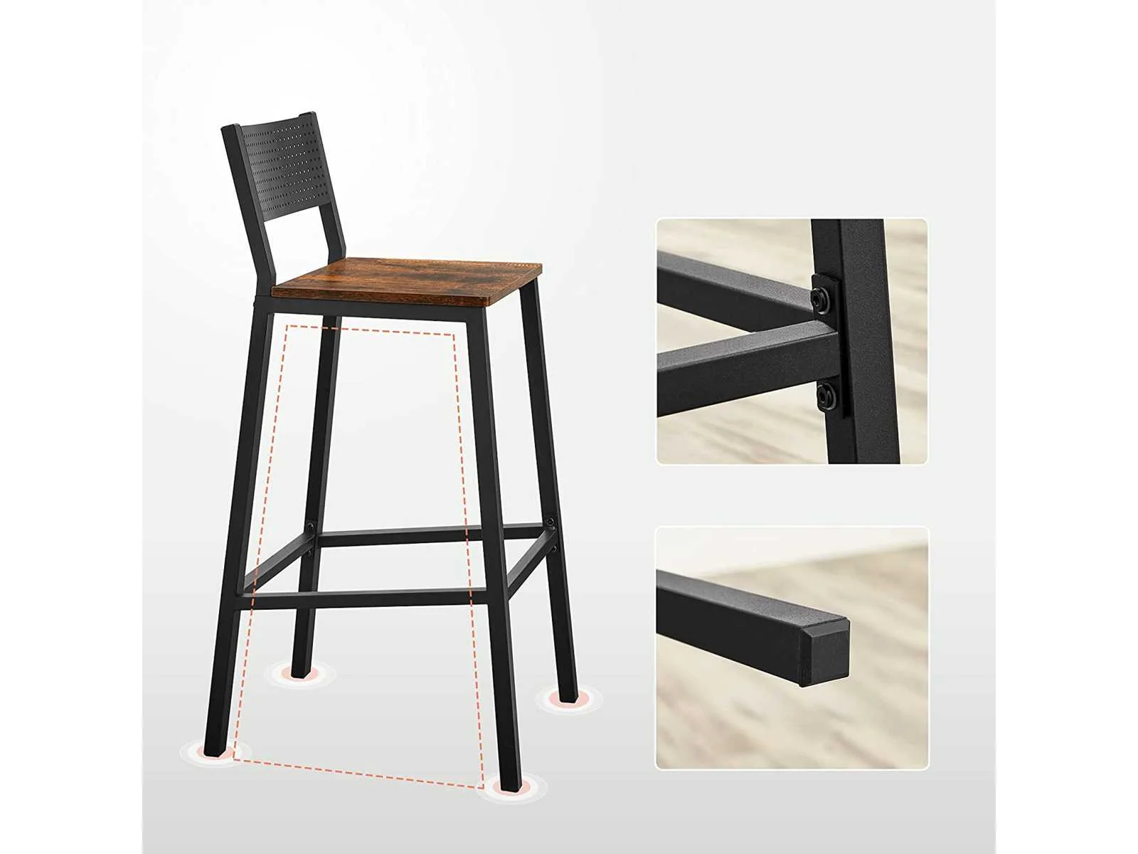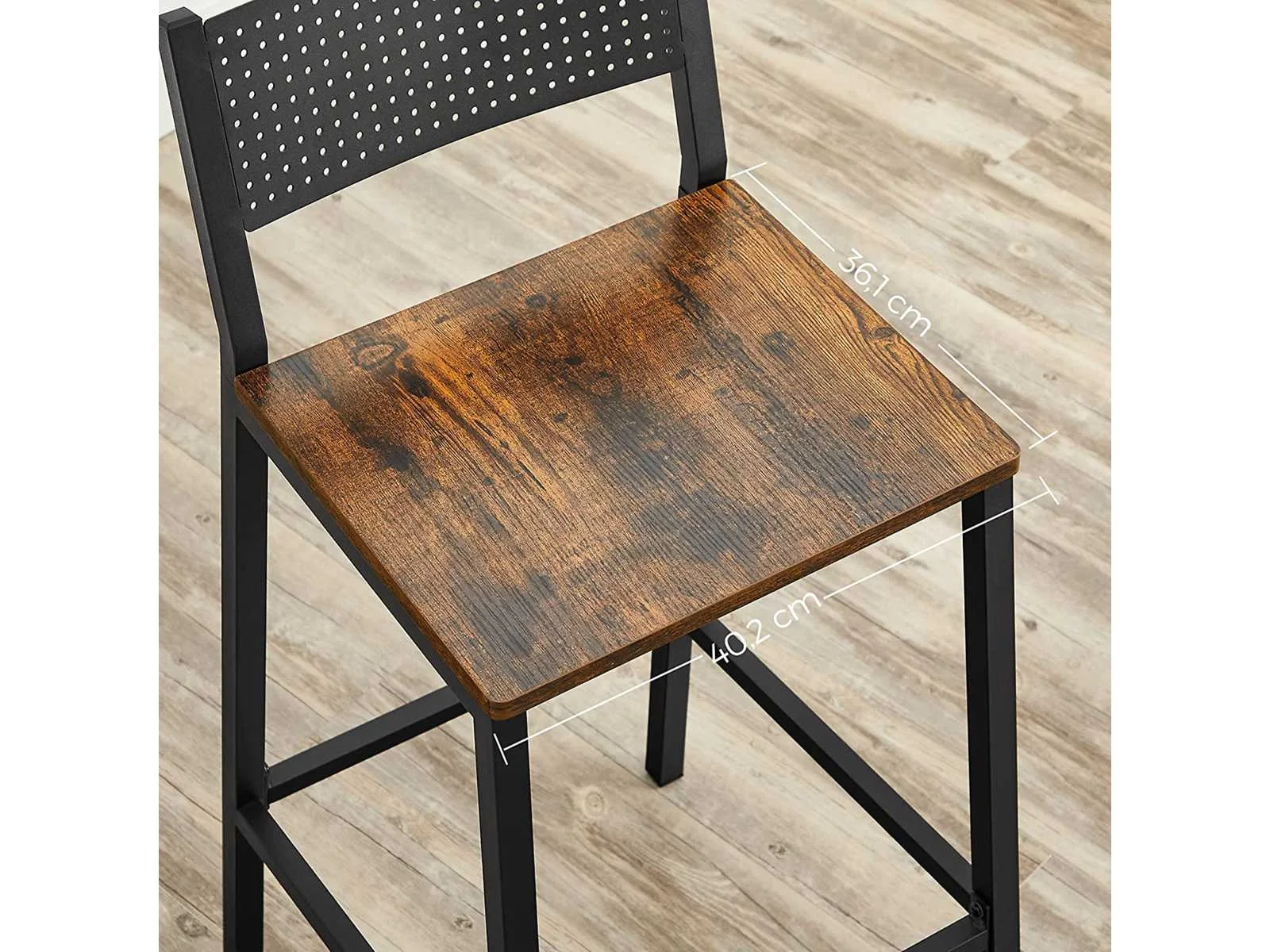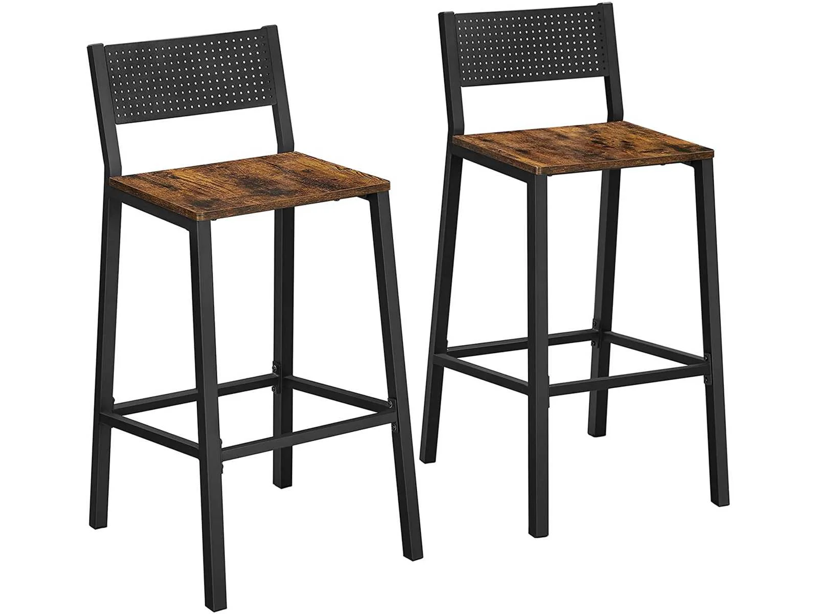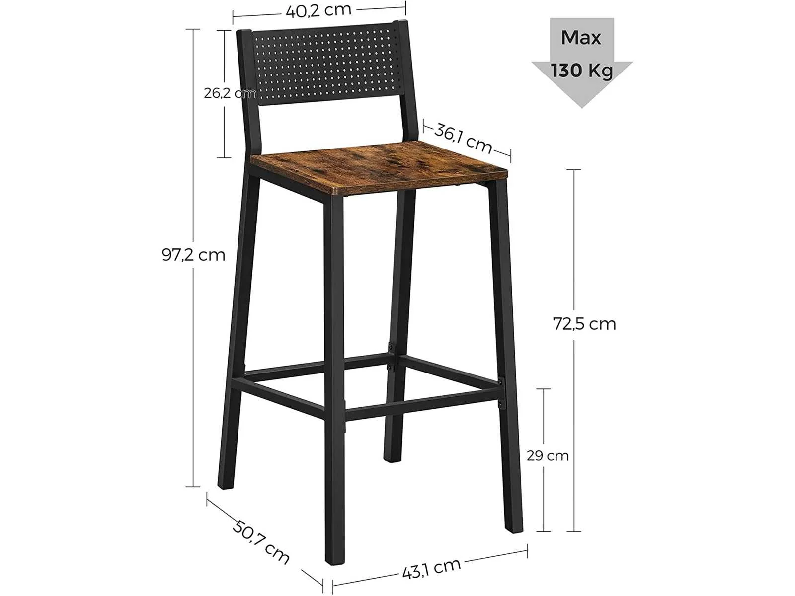Kenmerken: Kleuren: Rustiek bruin, zwart Materialen: spaanplaat, staal Afmetingen van elke kruk: 43,1 x 50,7 x 97,2 cm (L x B x H) Gewicht van elke kruk: 12,8 kg Maximaal statisch draagvermogen van elke kruk: 130 kg Levering: Non