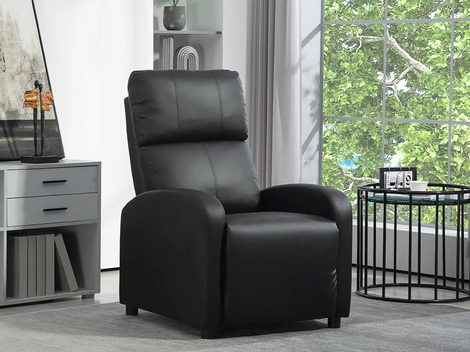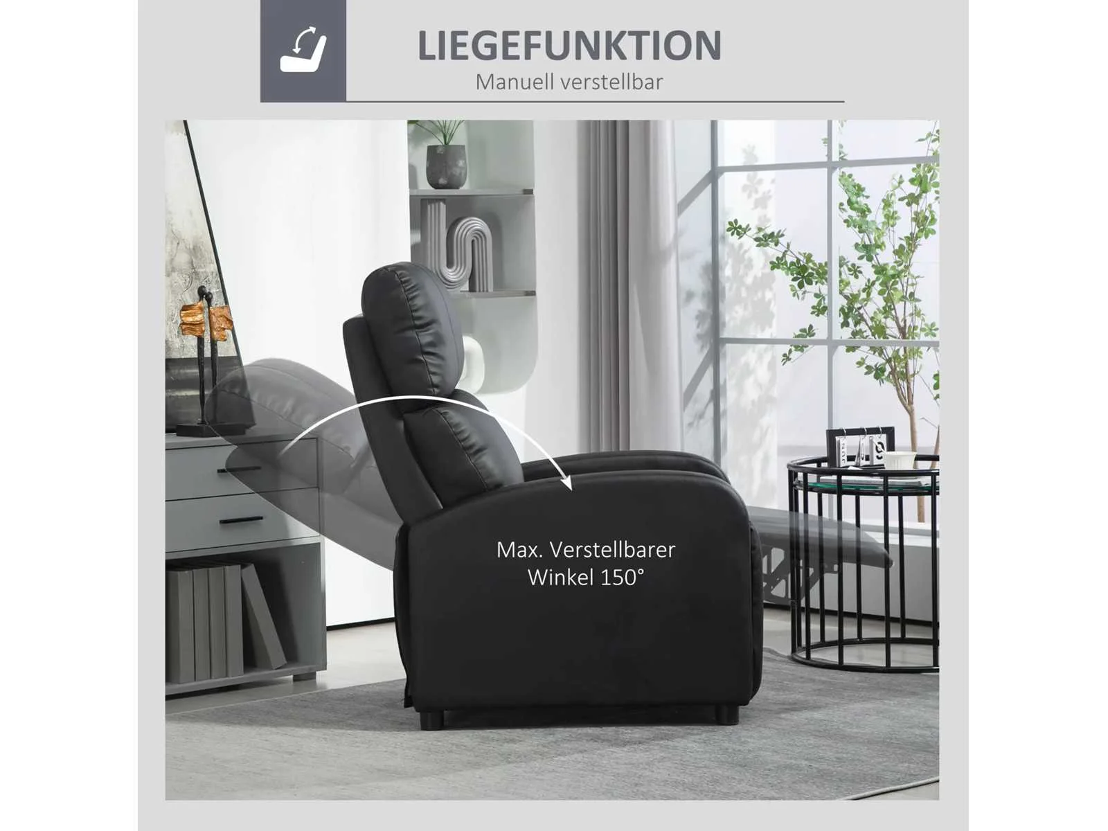Technische gegevens: ? Materialen: kunstleer, schuim, hout, metaal ? Totale afmetingen: B69,5 x D89,5 x H104,5 cm ? Afmetingen bij het liggen: L69,5 x B152 x H82cm ? Afmetingen rugleuning: B53 x H59 cm ? Zitting: B49 x D52,5 cm ? Zithoogte: 45,5 cm ? Kleur: Zwart ? Gewicht: ca. 26 kg ? Max. draagvermogen: 136 kg Non