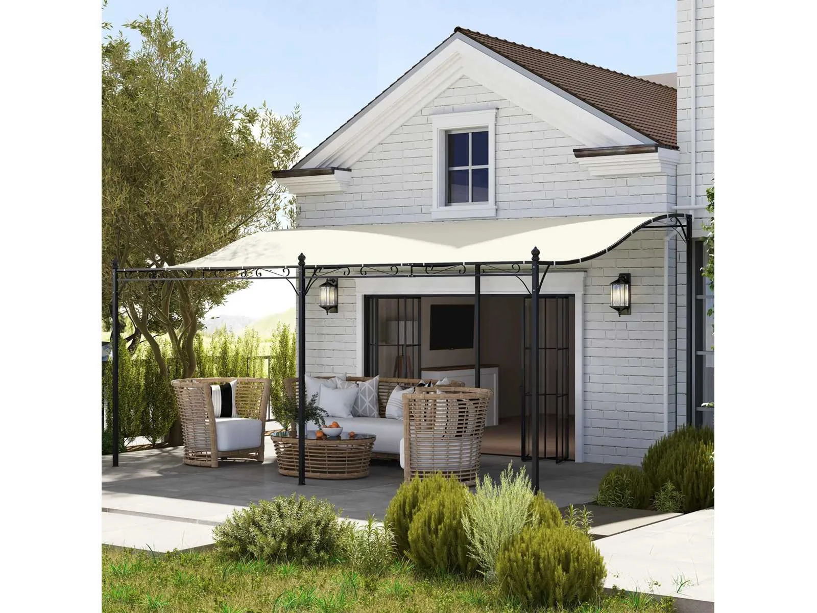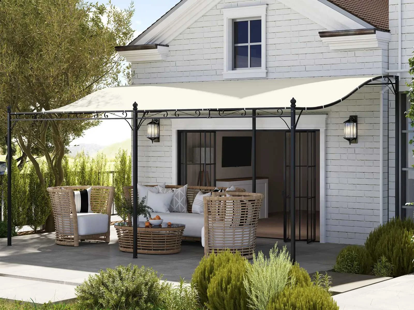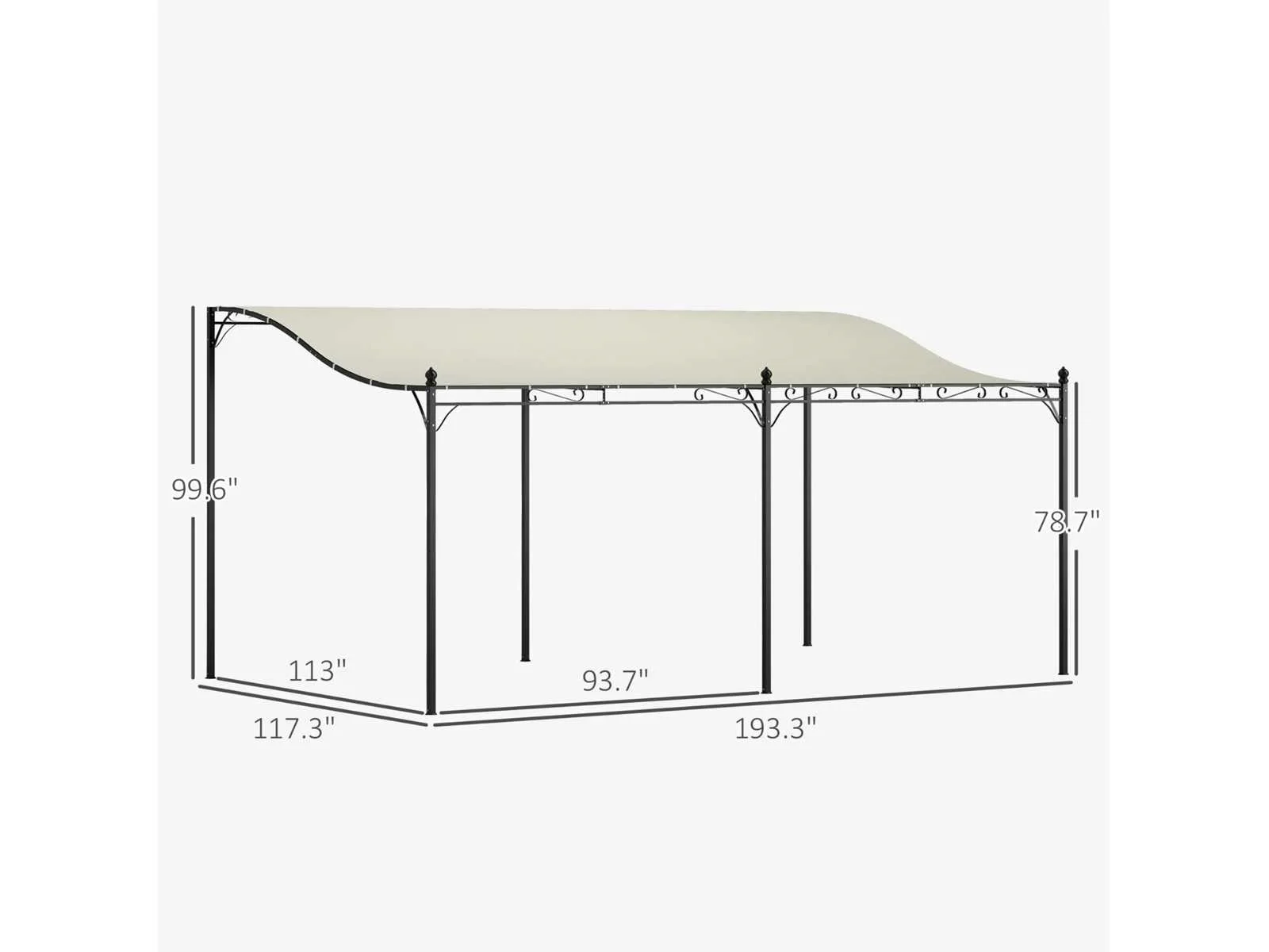 Specificatie: - Kleur: Crèmewit - Materialen: Metaal - Totale afmetingen: 193,3 "L x 117,3" B x 78,7 "/99,6" H - Kolomafstand: 93,7 "L x 113" W - Kolom Grootte: 1,57 "L x 1,57" W - Windweerstandsniveau: 4 (17,4 mph) Non