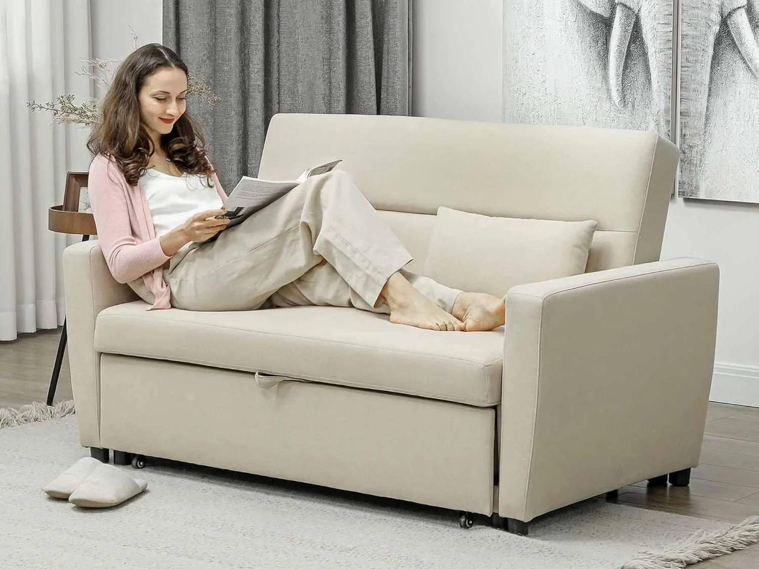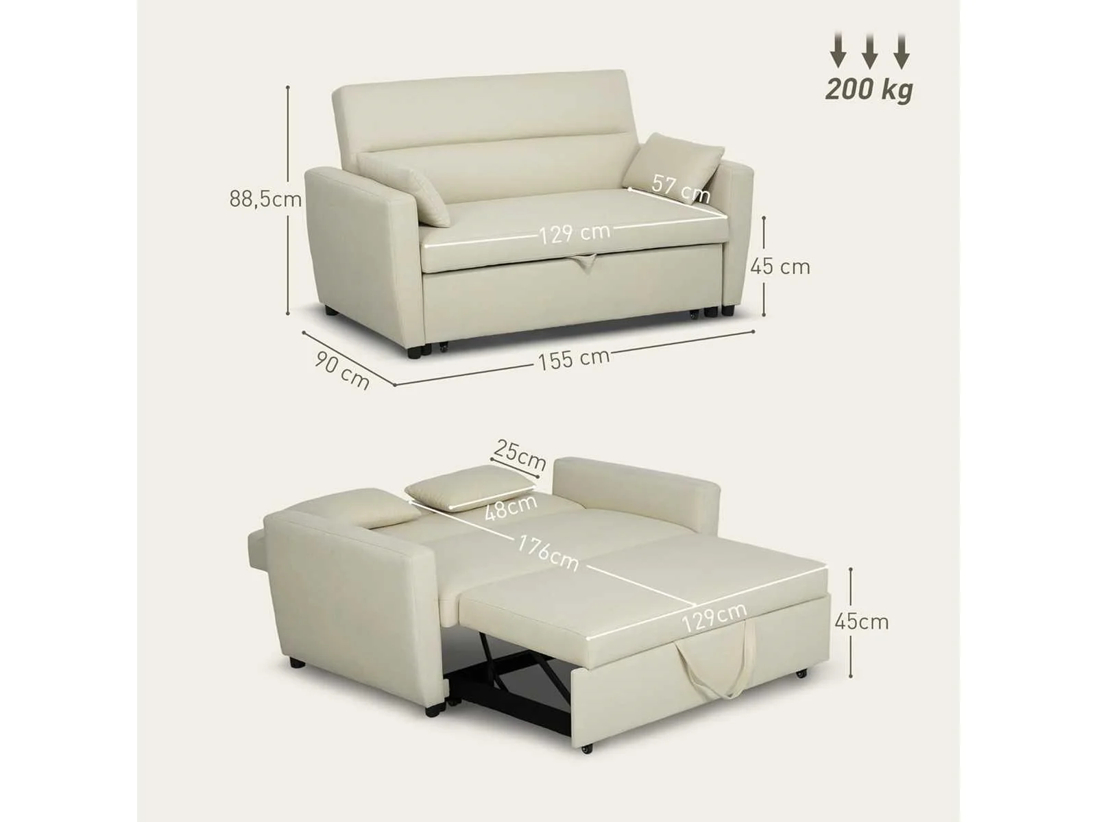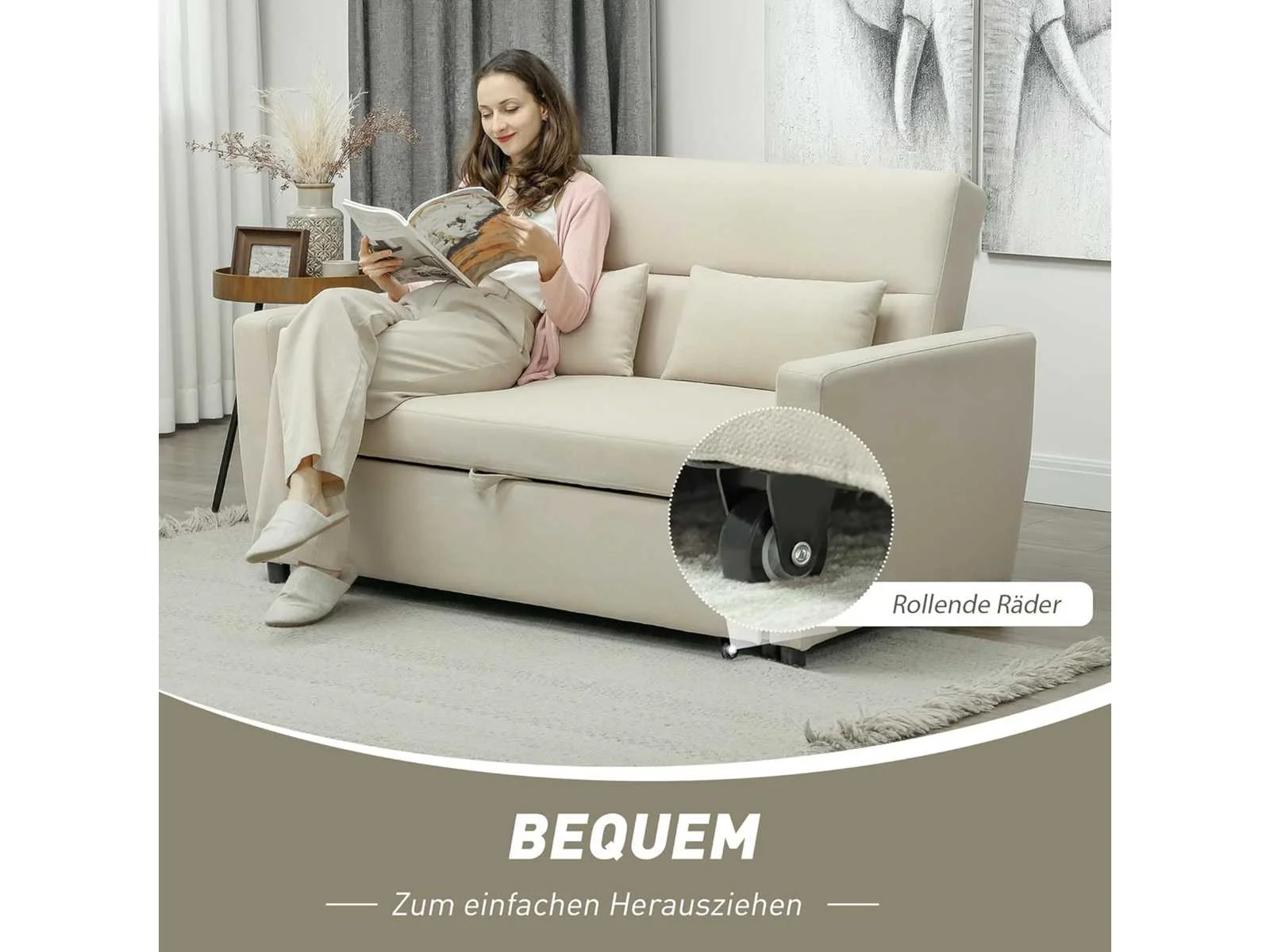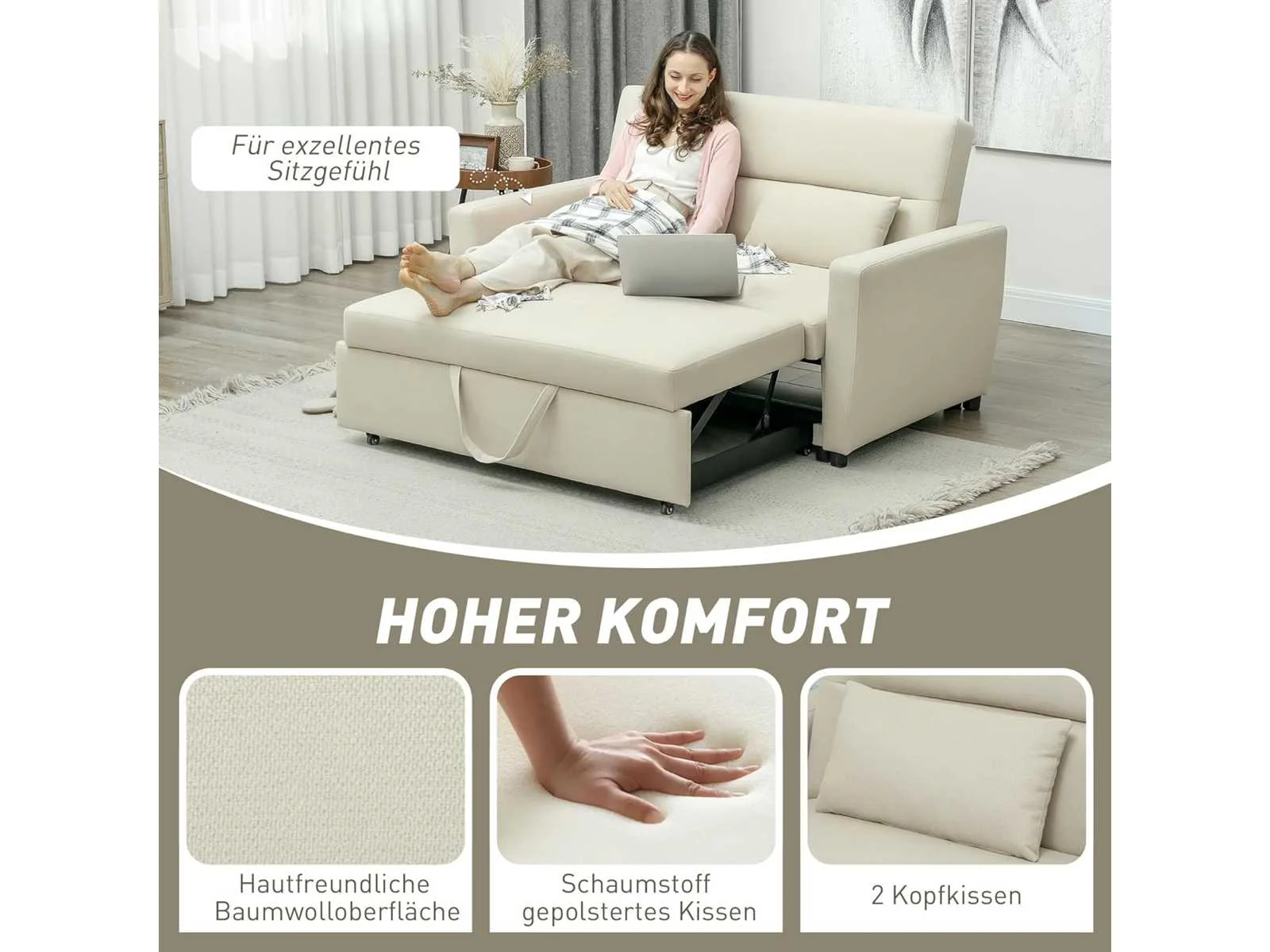 Een zeer praktische 2-in-1 bank, die het gemakkelijk maakt om een bank te krijgen in een comfortabele en gebruiksvriendelijke weddenschap. Zeitlose Design, de perfecte voor alle Wohnzimmer, Schlafzimmer, Hobbyraum of Jugendzimmer passt De Rückenlehne bevindt zich in 3 boven elkaar liggende niveaus en ermöglicht, zodat de ideale positie voor maximale training Polsterung der Couch mit Schlaffunktion sorgt für ein erstklassiges Sitz- und Liègegefühl Inclusief twee kussen en armen voor persoonlijke verzorging Angenehmer Stoffbezug, der zusätzlichen Komfort für den menschlichen Körper bietet Robust Gestell aus Eukalyptusholz, belastbar bis zu 200 kg Bodenschonende Kunststofffüße des Schlafsofas mit Bettkasten, die Kratzer auf empfindlichen Oberflächen vermeiden Kleur: Beige Materialen Eukalyptusholz, Samt, Schaumstoff Gesamtabmessungen 155L x 90T x 88.5H cm Afmetingen zitting 129B x 57T cm Zitzhöhe 45 cm Größe der Armlehne 11B x 82T cm Snijbiet 129L x 176T x 45H cm Größe des Kopfkissens 48B x 25T cm Capaciteit 200 kg Non