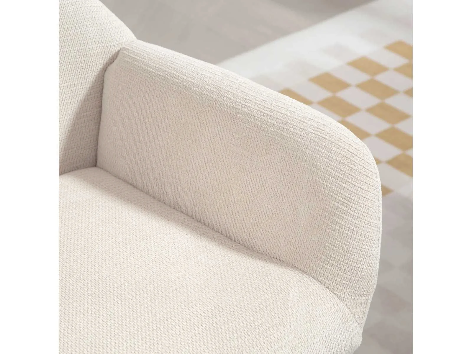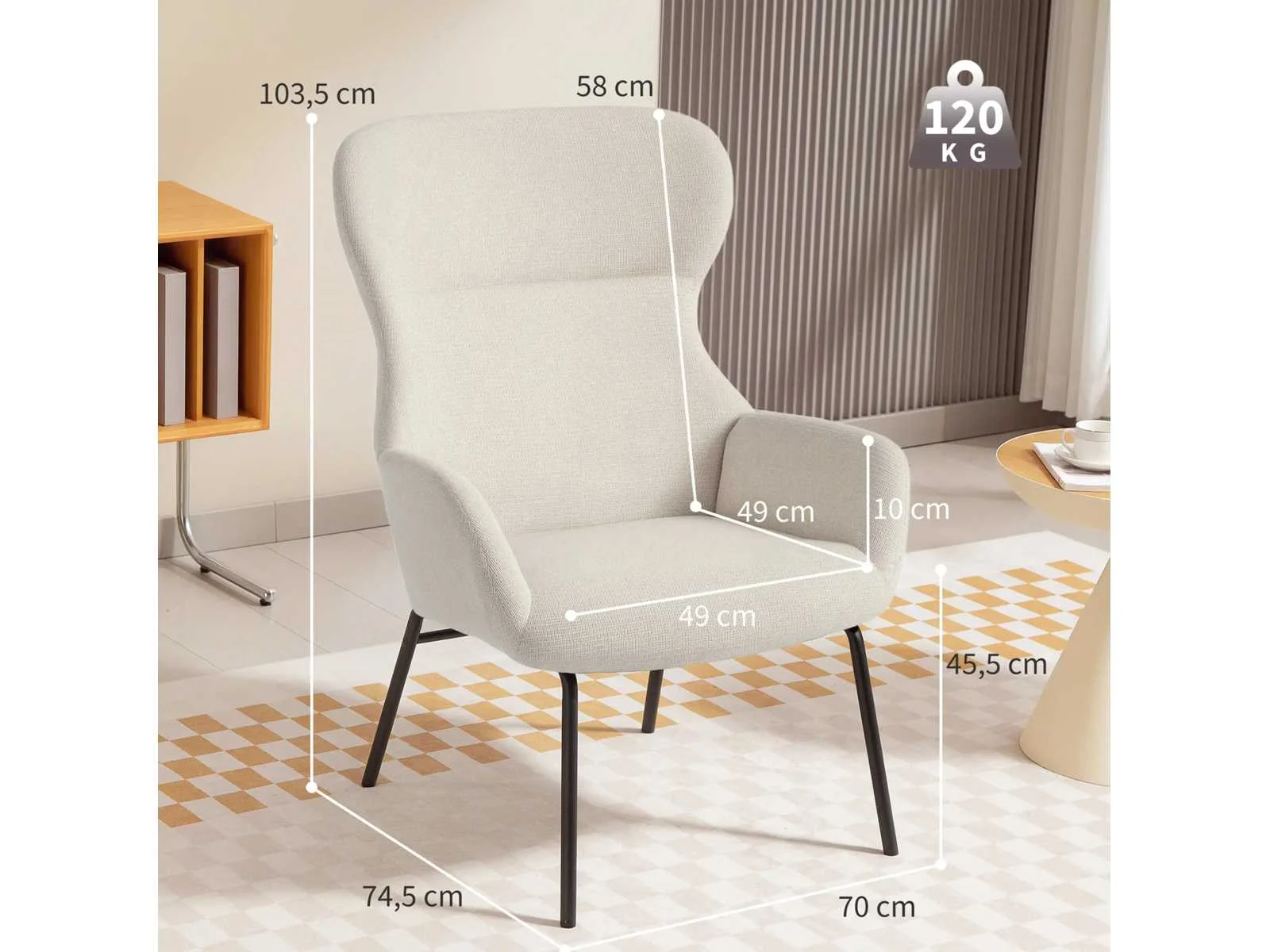 Specificaties: - Kleur: Crèmewit - Materialen: Linnen stof (100% polyester), schuim, staal - Totale afmetingen: 70B x 74,5D x 103,5H cm - Afmetingen zitting: 49B x 49D x 45,5H cm - Afmetingen rugleuning: 58B x 64D cm - Dikte zitting: 11 cm - Afmetingen armleuning: 42B x 7D cm - Hoogte van de armleuningen ten opzichte van de zitting: 10 cm - Draagvermogen: 120 kg Non