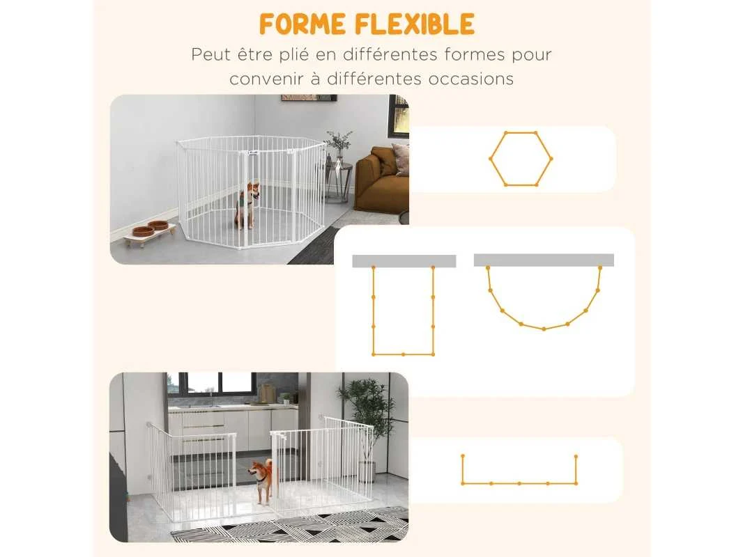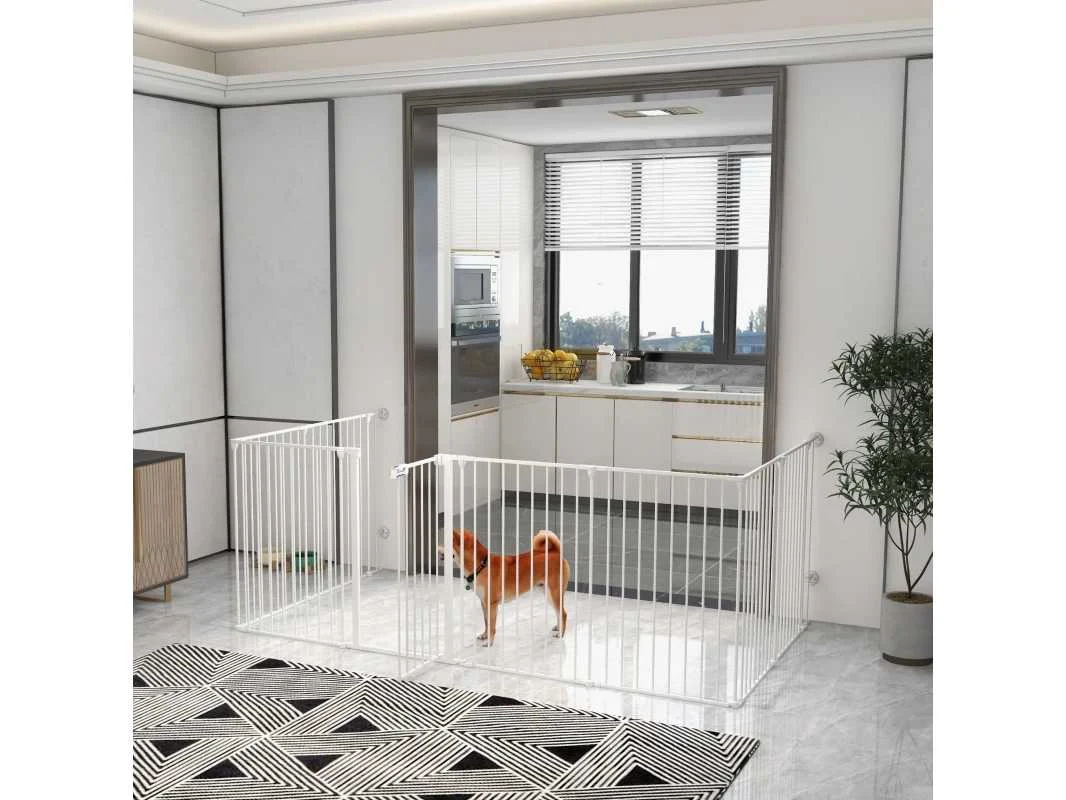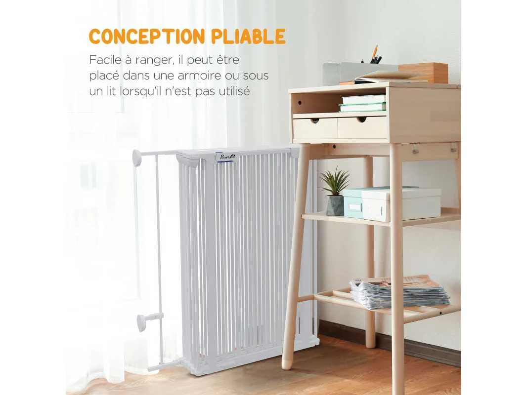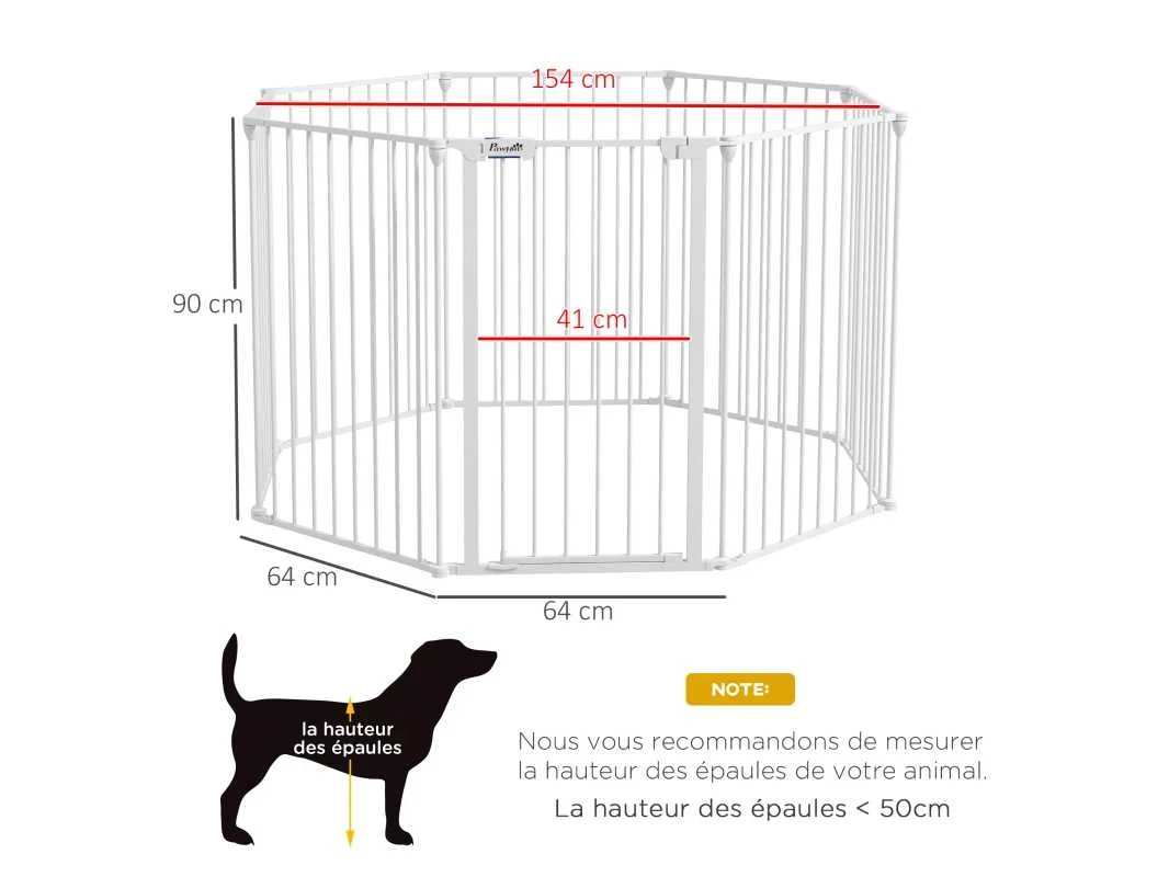 Specificaties: - Kleur: wit - Materialen: staal, PA6 kunststof -Zon. Totaal: Achthoekig: 154L x 154L cm. Vierkant: 128L x 128B cm. Rechthoek: 192L x 64B cm - Totale hoogte: 90 cm -Zon. van elk paneel: 64L x 90H cm -Zon. opgevouwen: 90L x 64B x 20H cm - Breedte deuropening: 41 cm - Afstand van de spijlen: 5,5 cm Non