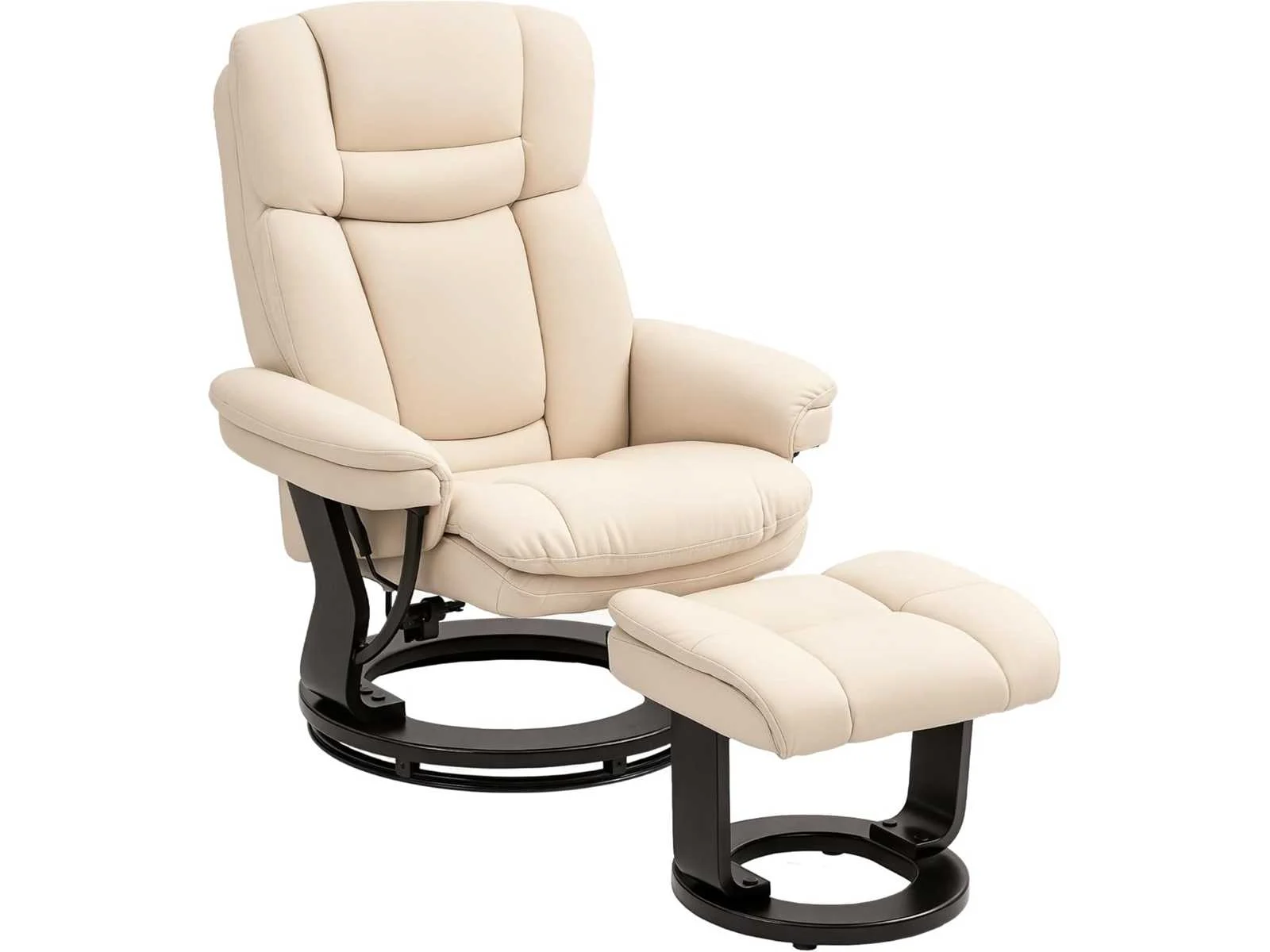 Verstelbare trekker: Geniet van pure ontspanning met de 360° rotatiefunctie en tot 130° kantelmogelijkheden. Of u nu leest, rust of tv kijkt, de hoek van de loungestoel kan eenvoudig worden aangepast aan uw persoonlijke behoeften Voetsteun inbegrepen: de ligstoel met ligfunctie en de voetensteun hebben een rond, elegant design en zijn bekleed met onderhoudsvriendelijk synthetisch leer dat zowel stijlvol als comfortabel is Stabiel en veilig: Uitgerust met een stevig metalen frame en gebogen houten onderstel biedt deze tv-fauteuil met slaapfunctie antislipvoetjes en een draagvermogen van 150 kg, wat zorgt voor een hoge stabiliteit en een lange levensduur Informatie: Afmetingen van de bioscoopstoel (rechts): 86 x 83 x 107 cm (B x D x H) - Afmetingen (schuin): 86 x 110 x 95 cm (B x D x H). Afmetingen voetensteun (B x D x H): 49 x 44 x 41 cm. Maximale belasting: 150 kg. Montage vereist Non