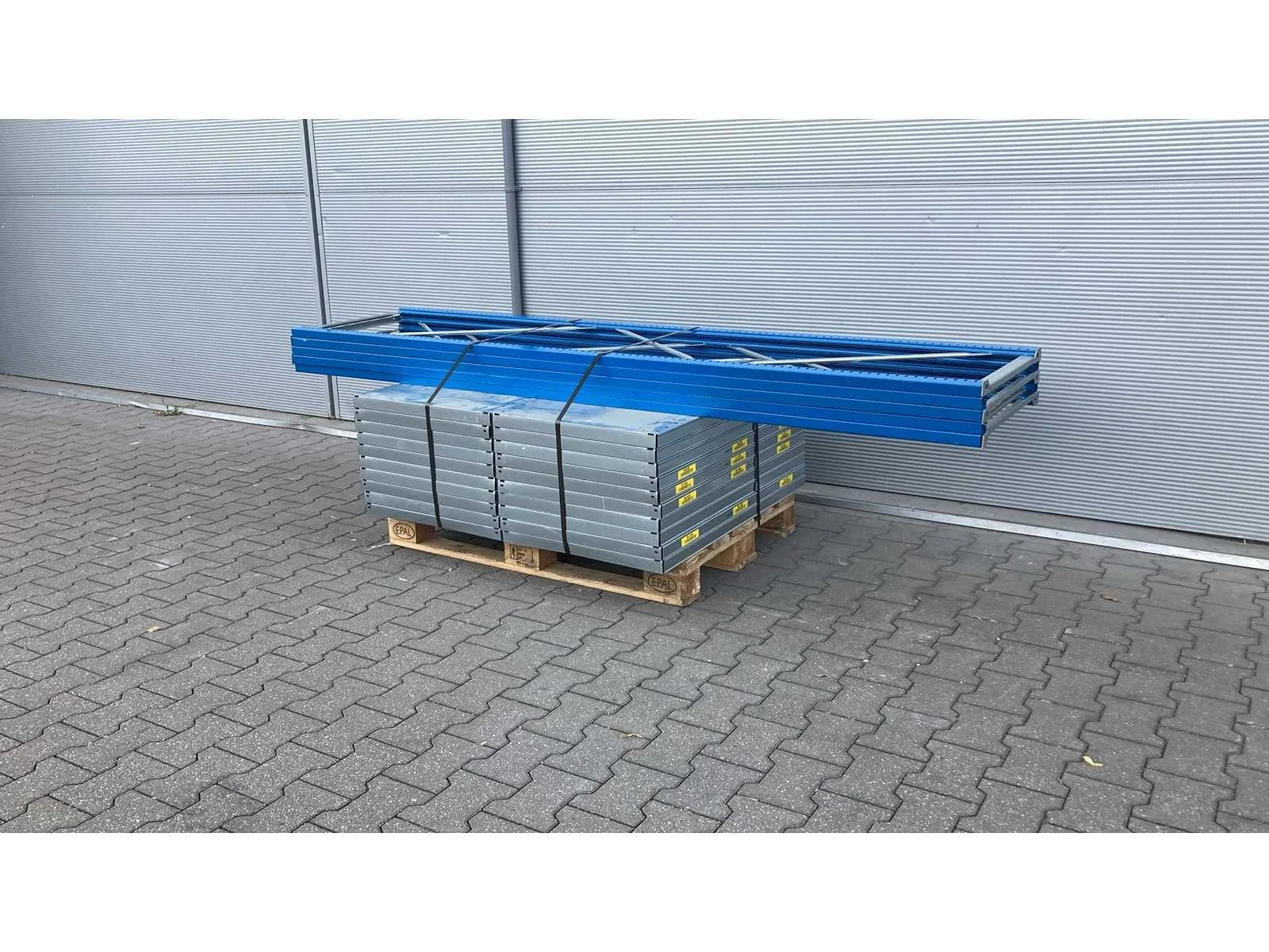 10x staander 2500x600mm; 40x legbord 1200x600mm; gebundeld; gebruikt; Nee Merk: Nedcon Aantal secties: 9 Sectie afm. b: 1200mm Sectie diepte: 600mm Sectie afm. h: 2500mm Aantal staanders: 10 Aantal legborden: 40 Demontabel: true