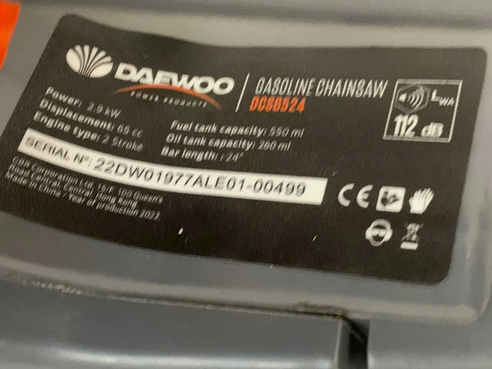 112db; tankinhoud 550ml; 65cc; incl. gereedschap handleiding; 2 stroke; 4891 Nee Merk: Daewoo Type: DCS6524 Zaagblad afm. l: 600mm Zaagblad afm. b: 100mm Zaagbladdikte: 1.50mm Brandstof: Benzine Motorvermogen (kW): 2.90kW Eigen gewicht: 10kg Totale afmeting L: 1060mm Totale afmeting Breedte: 240mm Totale afmeting Hoogte: 270mm