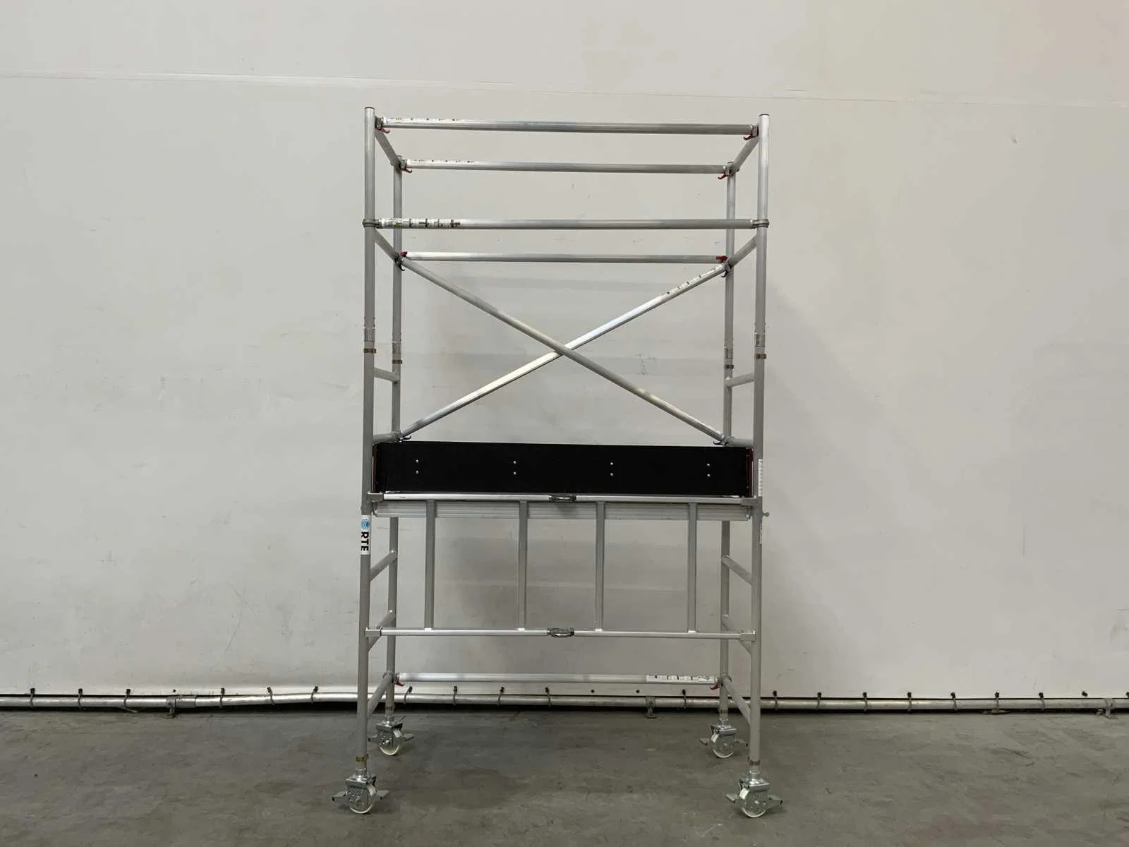 Class 2; maximale werkhoogte 4.8M; zwenkwielen met rem; EN1004; totale hoogte steiger 2850mm; 6507 Nee Merk: RTE Bouwjaar: 2024 Afmeting l: 1630mm Afmeting b: 725mm Afmeting h: 2850mm Aantal opbouwdelen: 2 Aantal platforms: 1 Aantal diagonaalschoren: 2 Aantal horizontaalschoren: 5 Aantal wielen: 4 Aantal stabilisatoren: 0 Aantal leuningen: 0