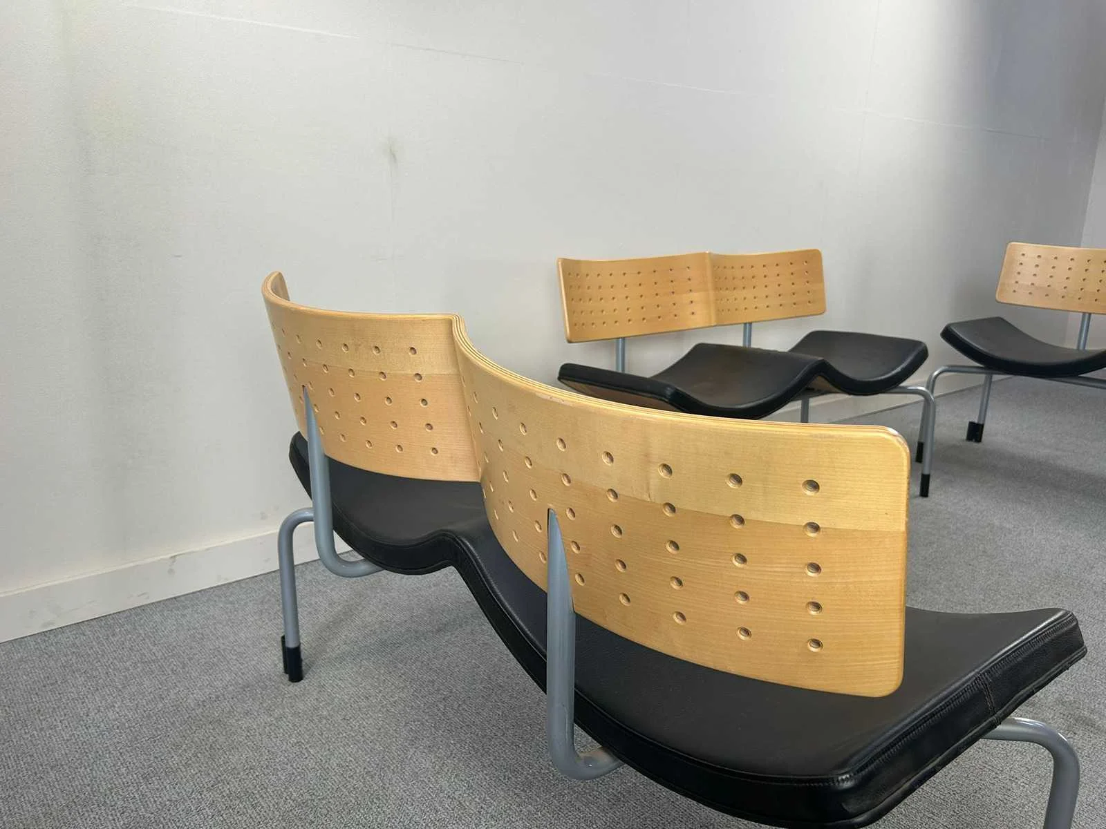 Een set van 3 DAN classics 2p-wachtbanken in zwat kunstleer met houten rugleuningen. Met gebruikssporen, staat kan variëren per item. Nee Merk: DAN classics Kleur: Zwart Gewicht: 90kg Materiaal: Stof