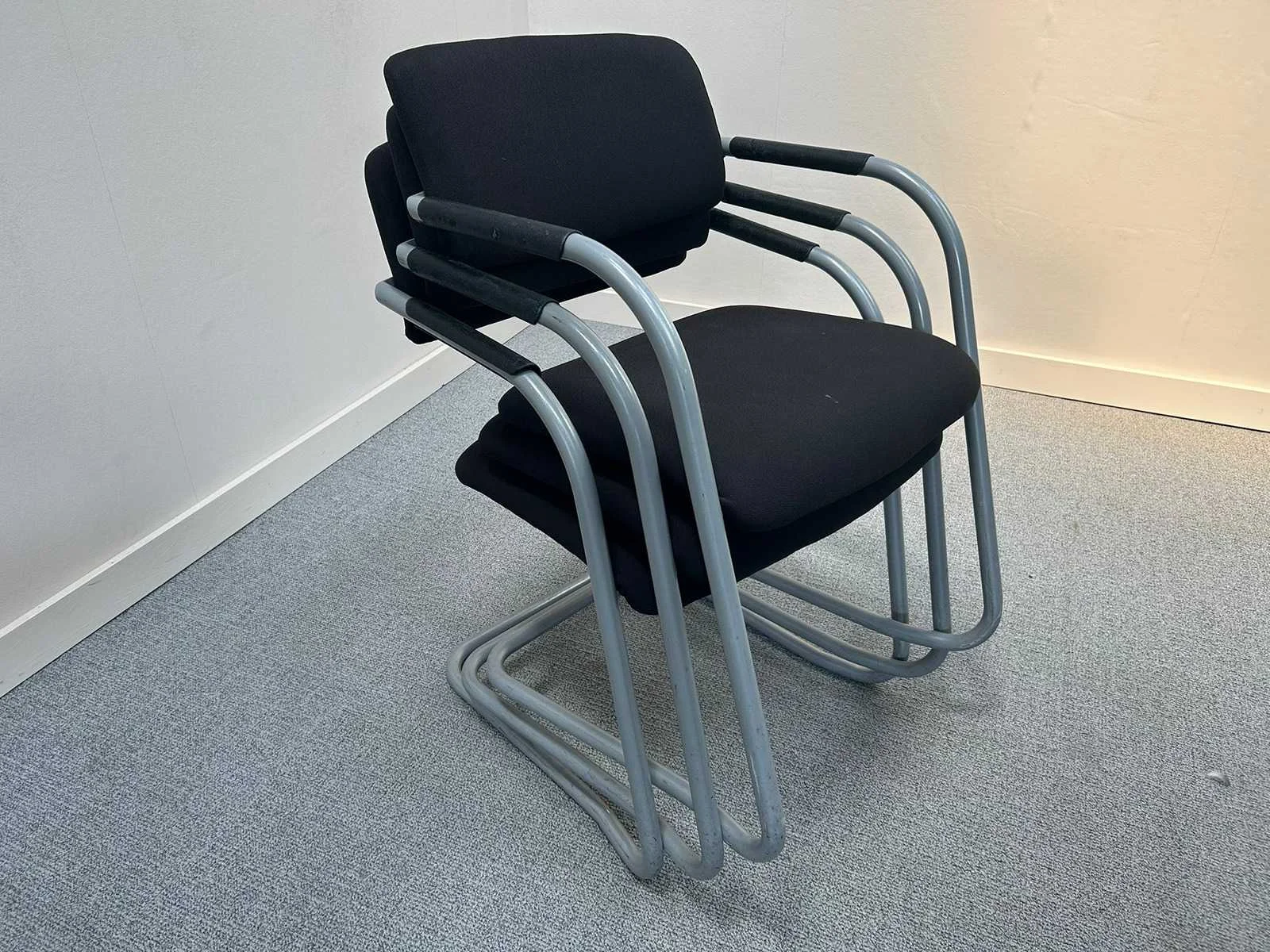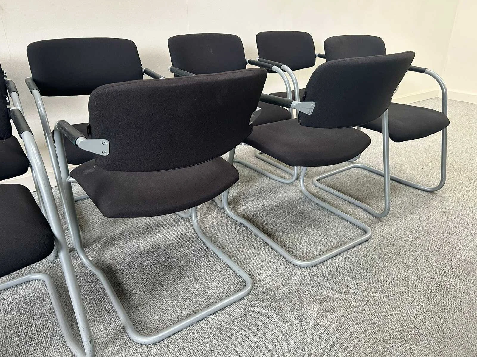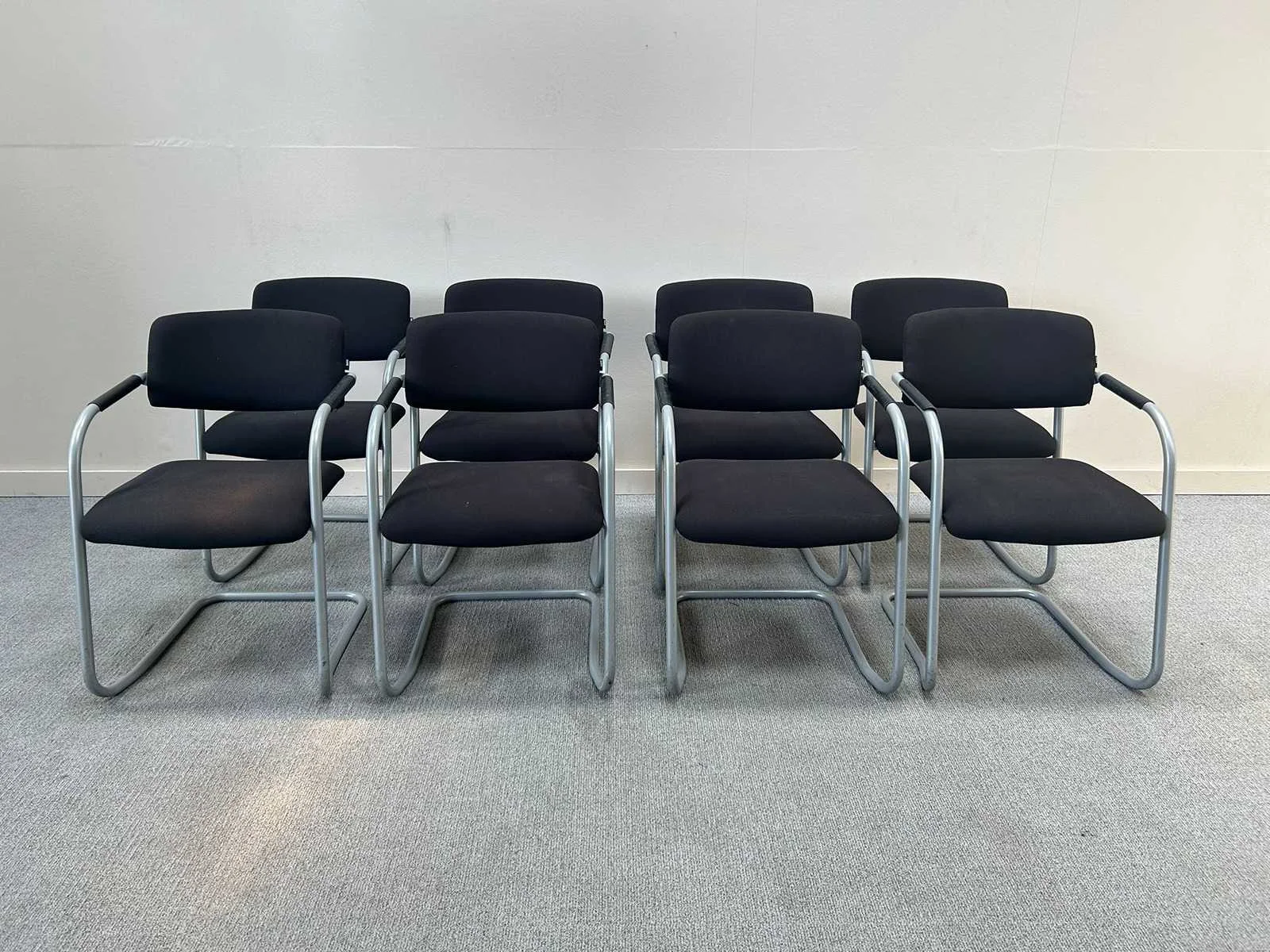 Een set van 8 stapelbare SATO cantilever bezoekerstoelen in het zwart. Met gebruikssporen, staat kan variëren per item. Nee Type: Bezoekersstoel Kleur: Zwart