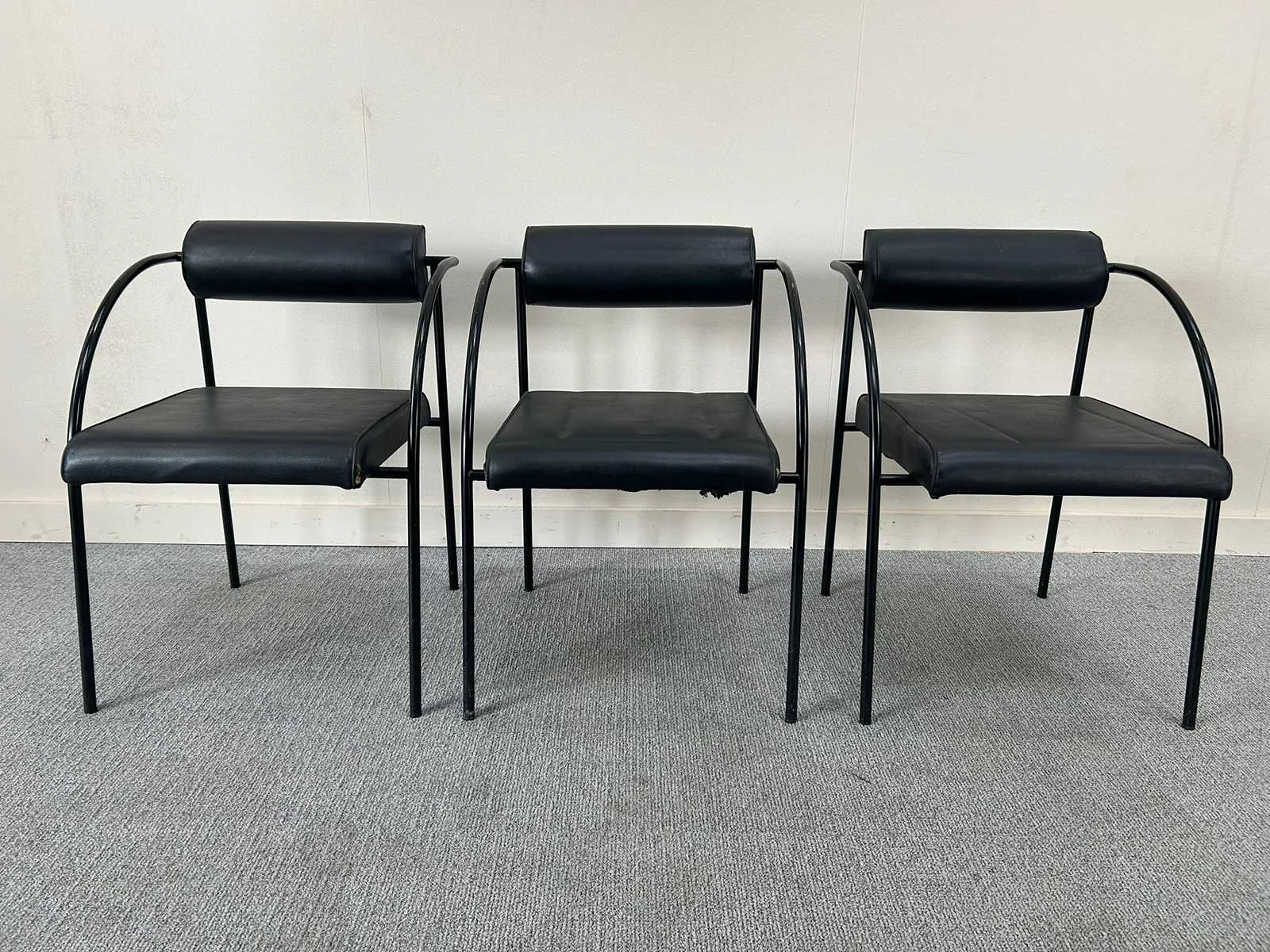 Een set van 3 Bieffeplast stapelbare Ontvangststoelen. Met gebruikssporen, lichte stofschade. Nee Merk: BIEFFEPLAST Type: Ontvangststoel Gewicht: 60kg Materiaal: Leder