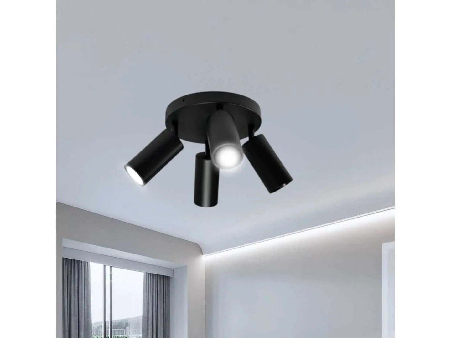 5 x Ronde opbouwarmatuur GU10 – 4 spots oriTafels – Zwart – Steun: GU10 – Aantal spots: 4 – Afmetingen: Ø 55 x 110 mm – Muurbeugel: Ø 200 x 25 mm – Vorm: rond – Draaibare spots: 350° rotatie en 70° kanteling – Materiaal: hoogwaardig aluminium – Kleur: zwart – Spanning: 85-265V (50/60Hz) – Beschermingsgraad: IP20 – Geschikt voor gebruik binnenshuis – GU10-lampen niet inbegrepen – Inclusief montageset voor eenvoudige installatie – Tijdloos, elegant en duurzaam ontwerp – Ideaal voor decoratieve en functionele verlichting. No Merk: Venus