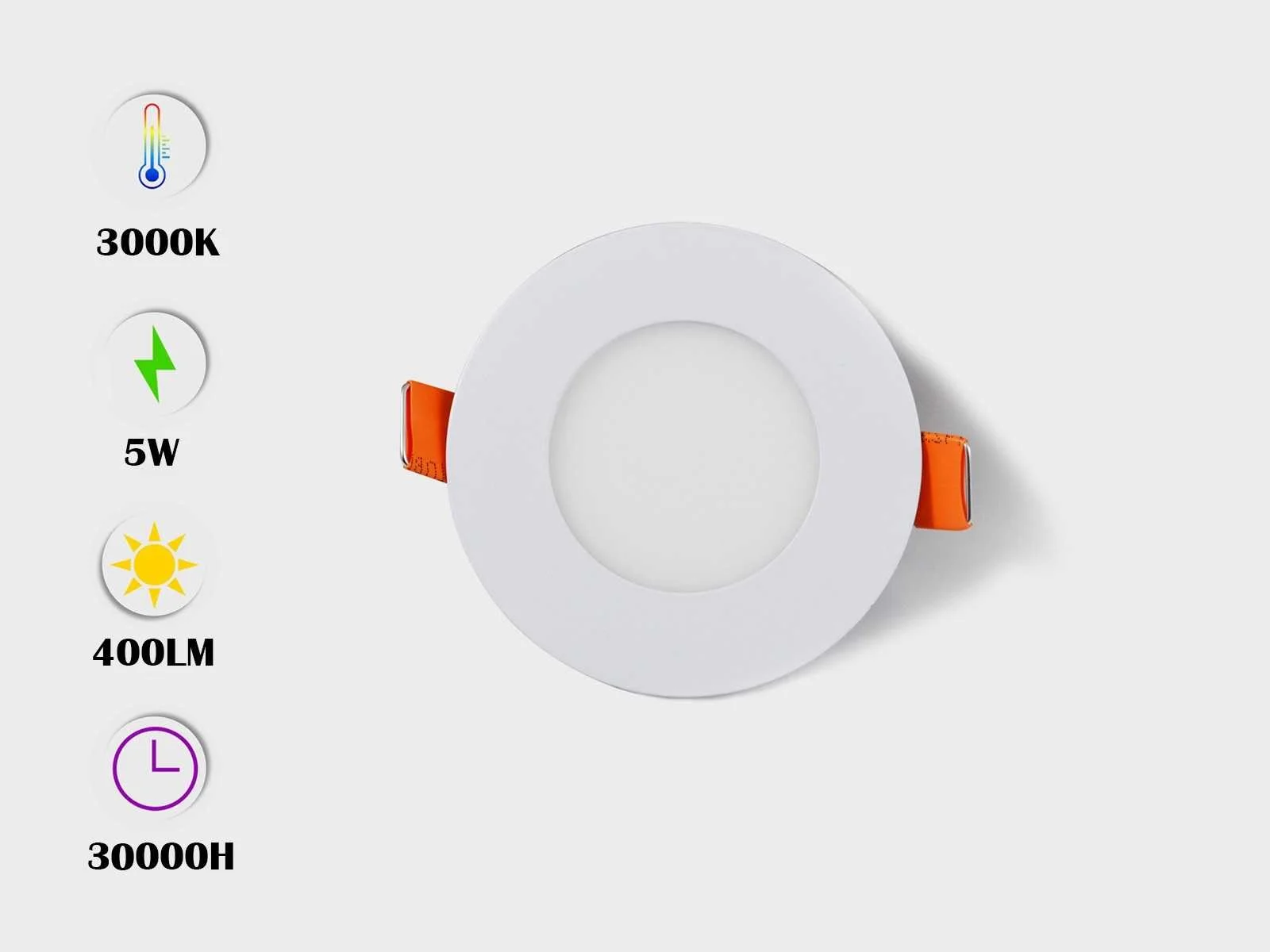 50 x LED-paneel 5W LED SMD - Inbouw - rond - 3000K - Inbouw LED-paneel - 5W - LED-type: SMD - Vorm: rond - Kleurtemperatuur: 3000K (Wit) - PuLichtsterkte: 400 lumen - Spanning: 220-240 V - Beschermingsgraad: IP20 - Levensduur: 30.000 uur - Inclusief stuurprogramma - Afmetingen: 85 mm x 20 mm - Montagediameter: 70 mm - Beamingshoek: 120° - Geschikt voor gebruik binnenshuis No