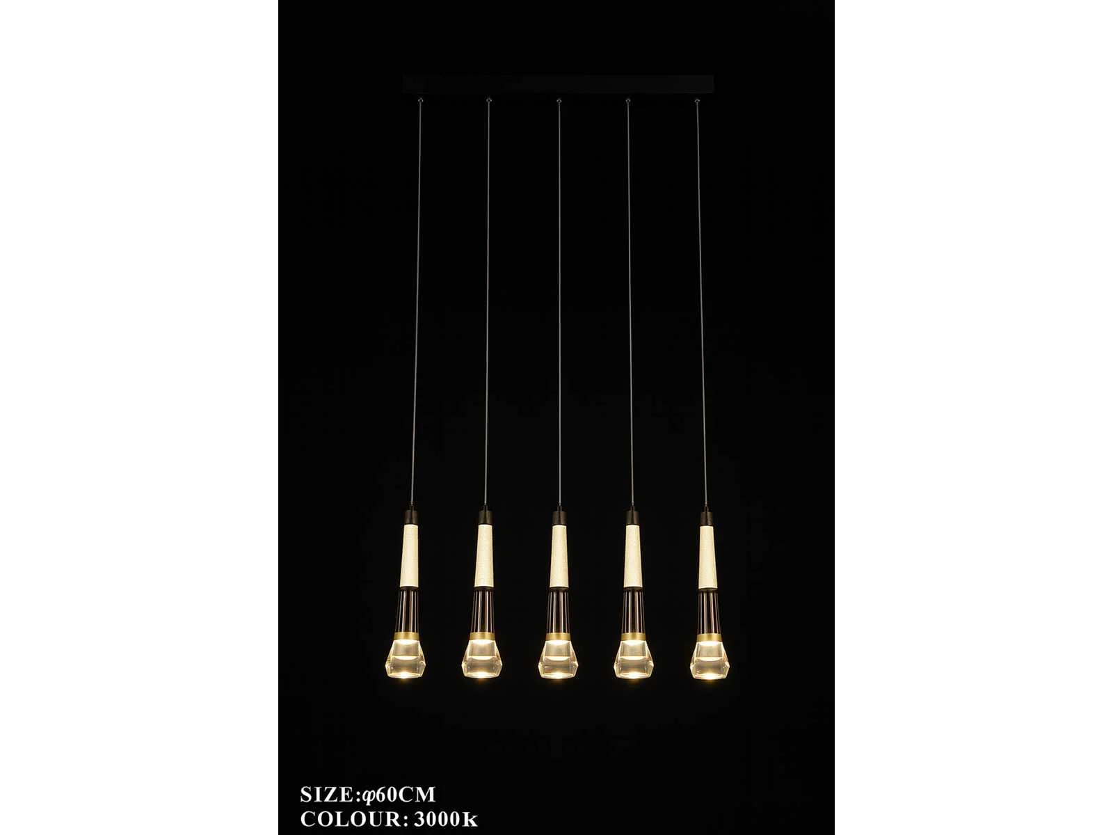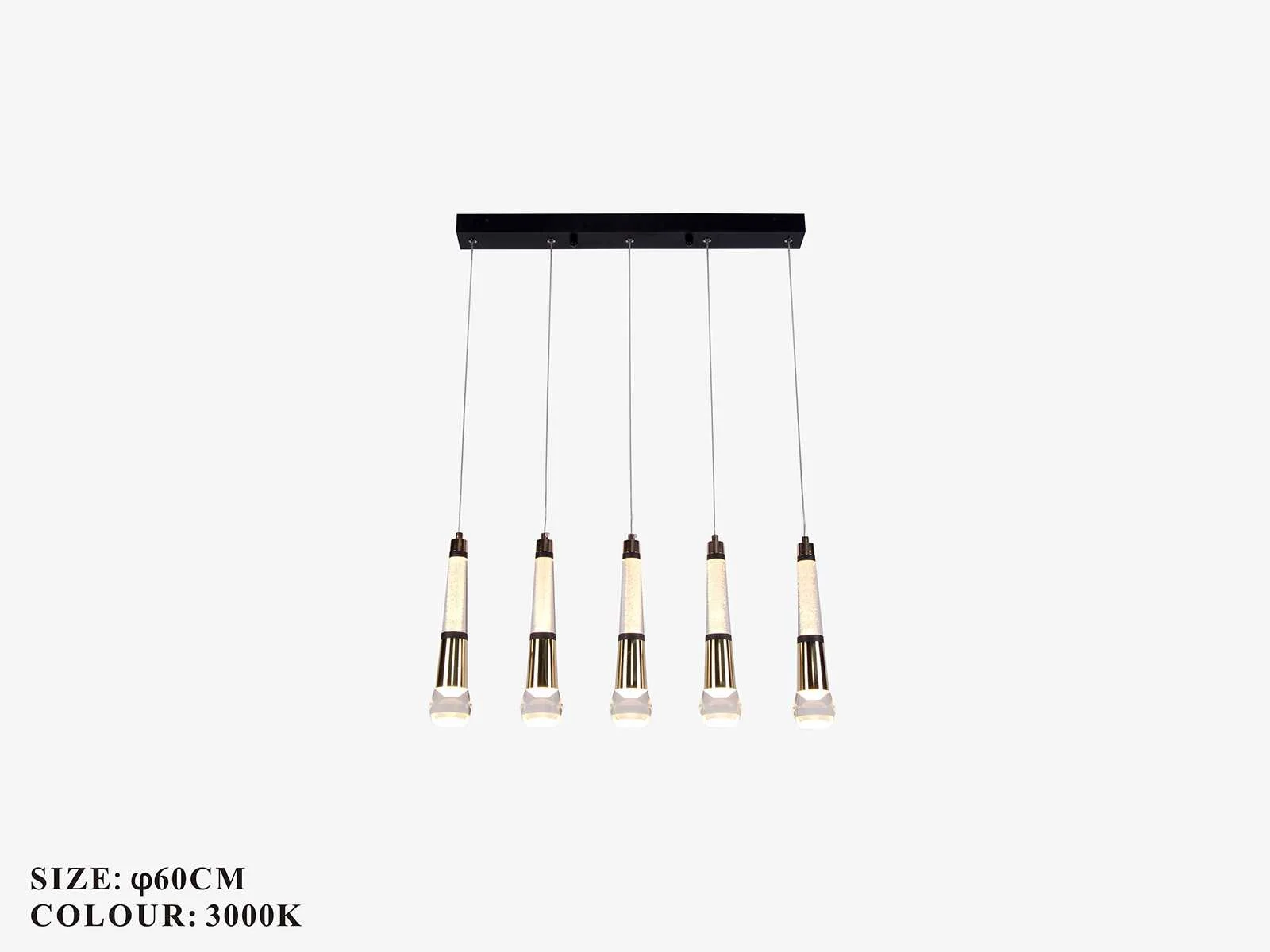 LED hanglamp model B032/5 – Kleurtemperatuur 3000K (warm wit) – Breedte: 600 mm – HoogteVerstelbaar – Lichtbron: geïntegreerde LED-strip – Spanning: 220-240V (50/60 Hz) – Inclusief montageset – Ideaal voor moderne binnenverlichting: woonkamers, eetkamers, kantoren of designruimtes – 3 jaar garantie. No