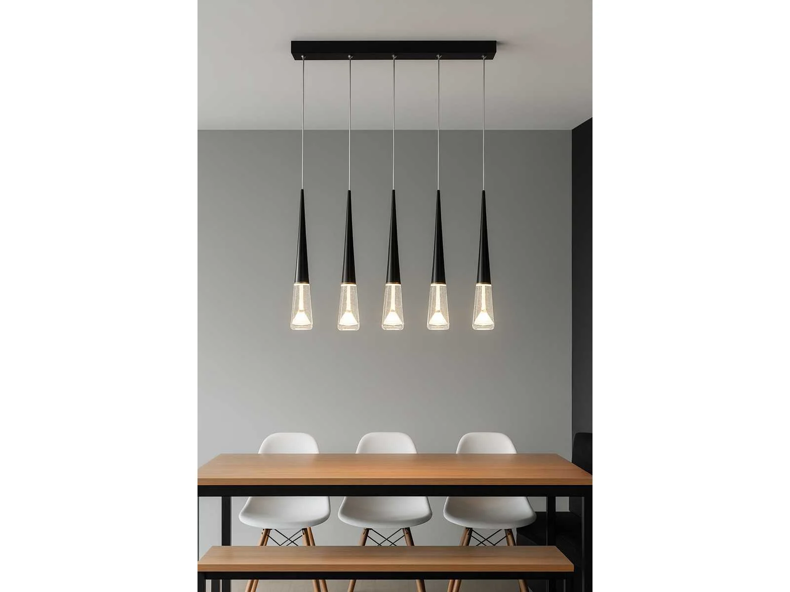 LED hanglamp model B043/5 – Kleurtemperatuur 3000K (warm wit) – BreedteA: 600 mm – In hoogte verstelbaar – Lichtbron: geïntegreerde LED-strip – Voltage: 220-240V (50/60 Hz) – Inclusief montageset – Perfect geschikt voor moderne binnenverlichting: eetkamer, woonkamer, keuken of kantoor – 3 jaar garantie. No