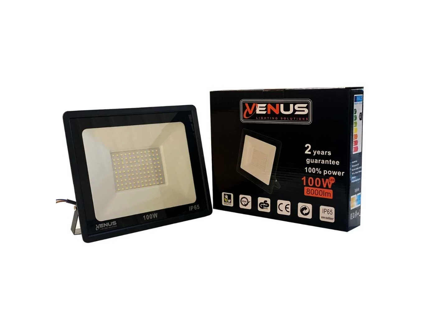 10 x LED Spotlight – Vermogen: 100W – LED-type: SMD – Kleurtemperatuur: 6500K (Koud wit) – Lichtstroom: 8000 lm – Afmetingen: 260 x 210 x 35 mm – Spanning: 110-240V (50/60Hz) – Geïntegreerde LED-driver voor stabiele prestaties – Levensduur: 25.000 uur – Beamhoek: 120° – Beschermingsgraad: IP65 (waterdicht, beschermd tegen stof en waterstralen) – Ideaal voor het verlichten van grote buitenoppervlakken. No Merk: Venus