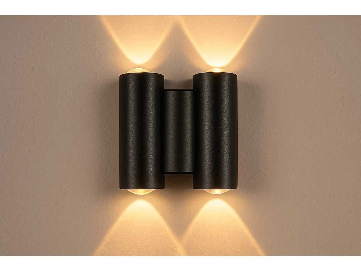 6 x 4W Up/Down Tweerichtings LED Wandlamp - Waterdicht (IP54) - 3500K (Warm Wit) - Artikelnummer: SW-47-2 - Zwart - COB LED - 300 Lumen - Afmetingen: 85 x 100 x 45 mm - Aluminium - Spanning: 220-240V (50-60Hz) - Levensduur: 30.000 uur - Inclusief montageset - Inclusief lamp - Geschikt voor gebruik binnen en buiten No