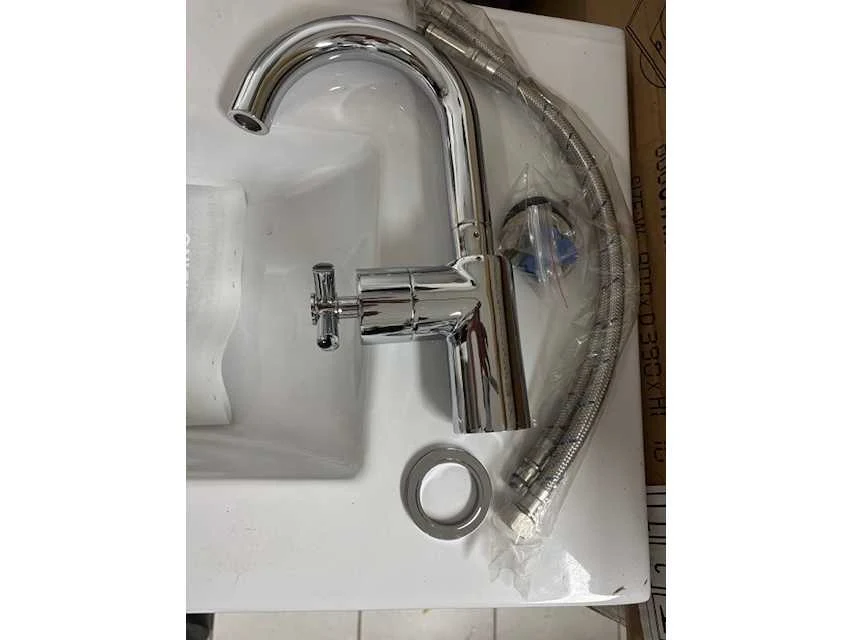 Elegance badkamermeubel compleet met Bruynzeel Molo kraan en elegance wastafel. hoogte 90 cm breed 80 cm diep 40 cm Nee Merk: Elegance