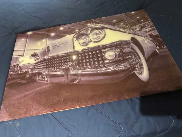 Glas schildery -oldtimer usa 120 cm hoog - 80 cm breed nieuw Nee