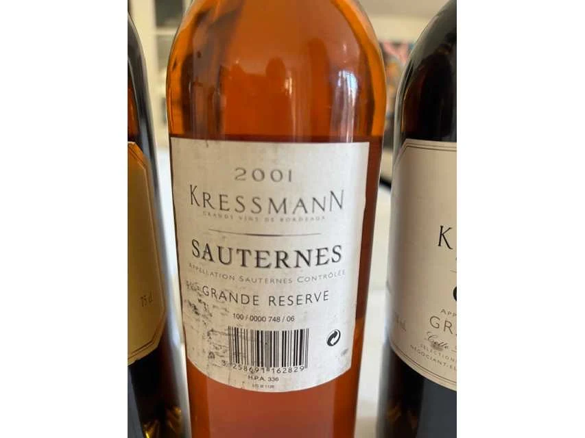 Luxe houten wijngeschenkdoos met 3 x sinds 2001 perfect gelagerde Kressmann wijnen . 1 X Kressmann Monopole Bordeaux 2001 NR 3258691180045 1 X Kressmann Graves Grand reserve 2001 NR 011954 1 X Kressmann Sauternes grand reserve 2001 Nr 013210 Kan eventueel opgestuurd worden tegen meerprijs. Sinds 2001 in professionele donkere wijnkelder gelagerd Nee Wijnhuis: Kressman