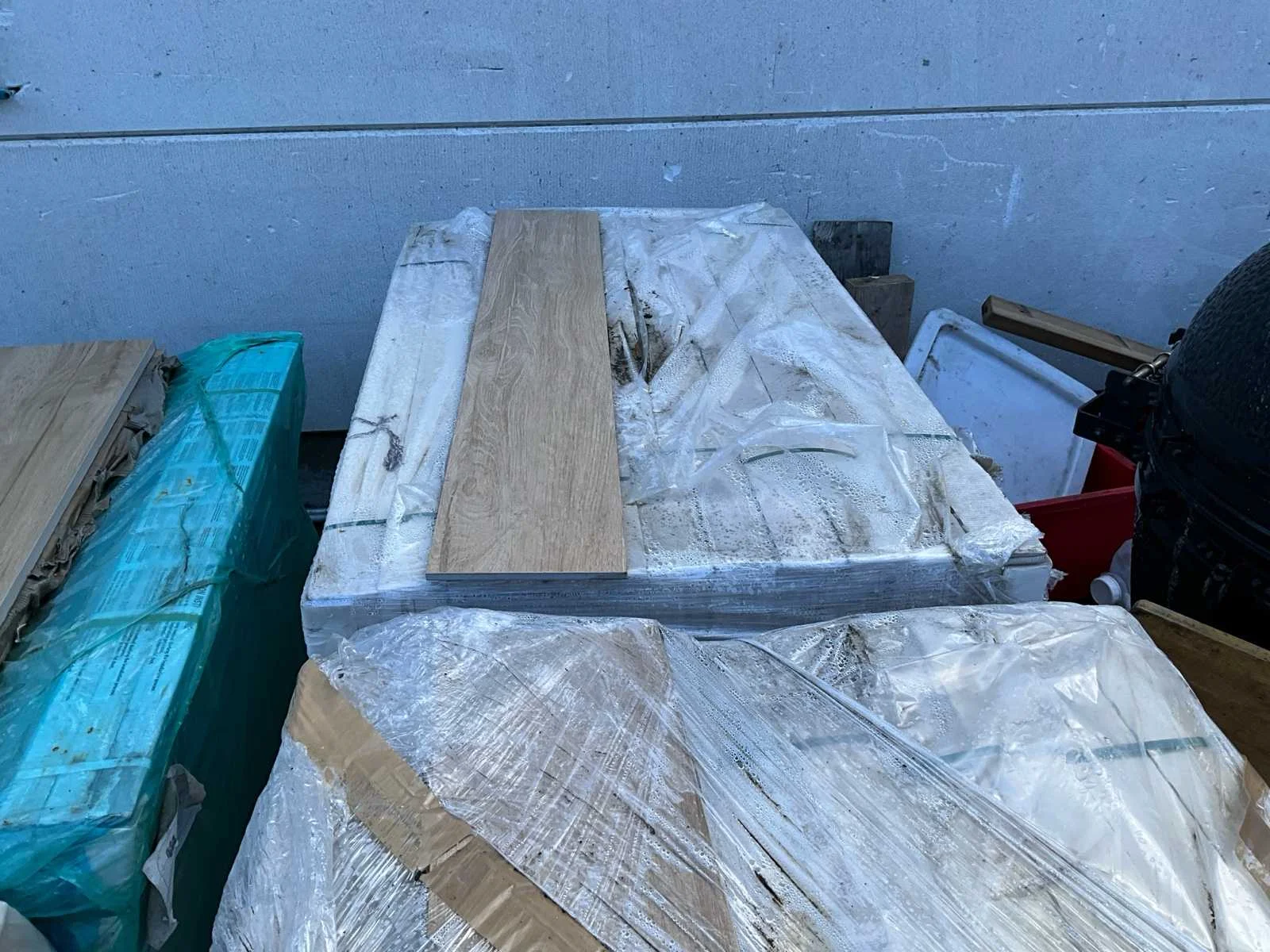 Lot verschillende soorten tegels. 144 m2 tegels rec glass 20x120. 48m2 artwood sad Terrastegels 75m2 Parkettegels 36m2 36m2 parkettegels 86m2 parkettels Voorbeeldfoto’s van materiaal op volgorde foto’s. Nieuw in verpakking No