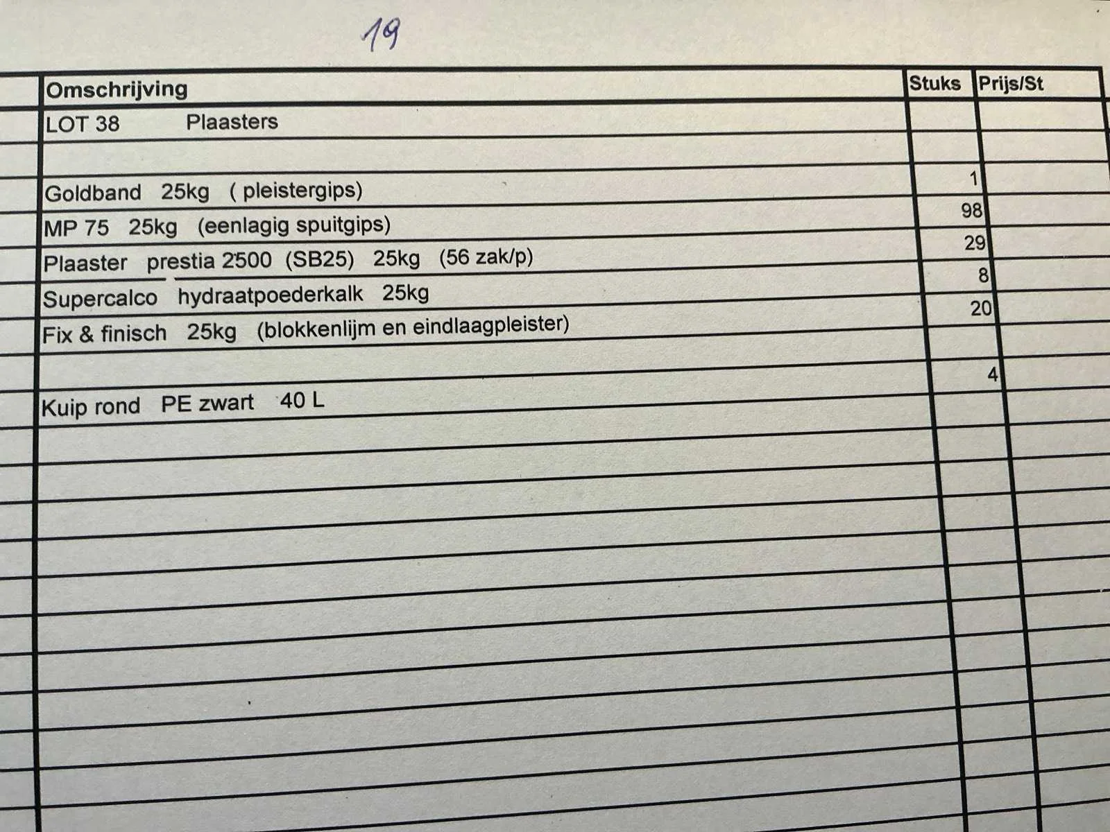 Goldband, MP 75, plaaster prestige 2500, supercalco hydraatpoederkalk, Fix&Finish, Kuip rond 4 stuks (40 l.) Nee