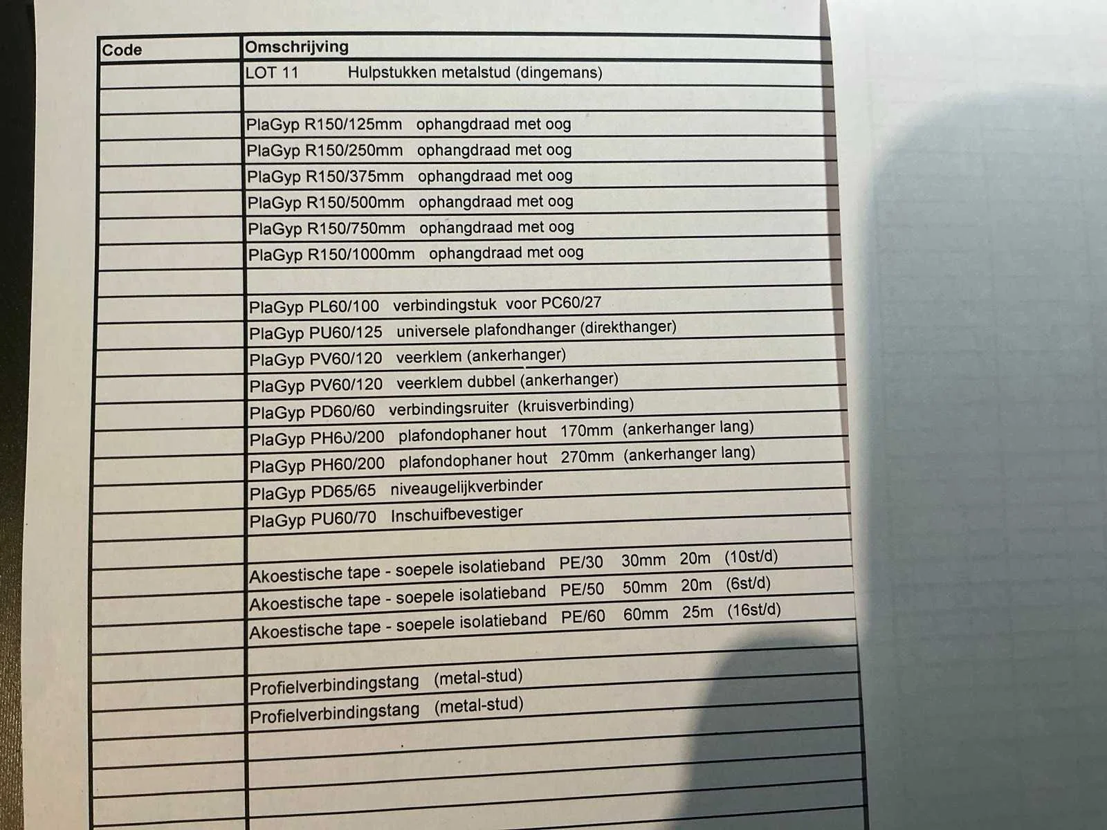 Hulpstukken Metalstud (dingemans), zie foto voor de verschillende afmetingen, akoestische tape, profielverbingstang Nee