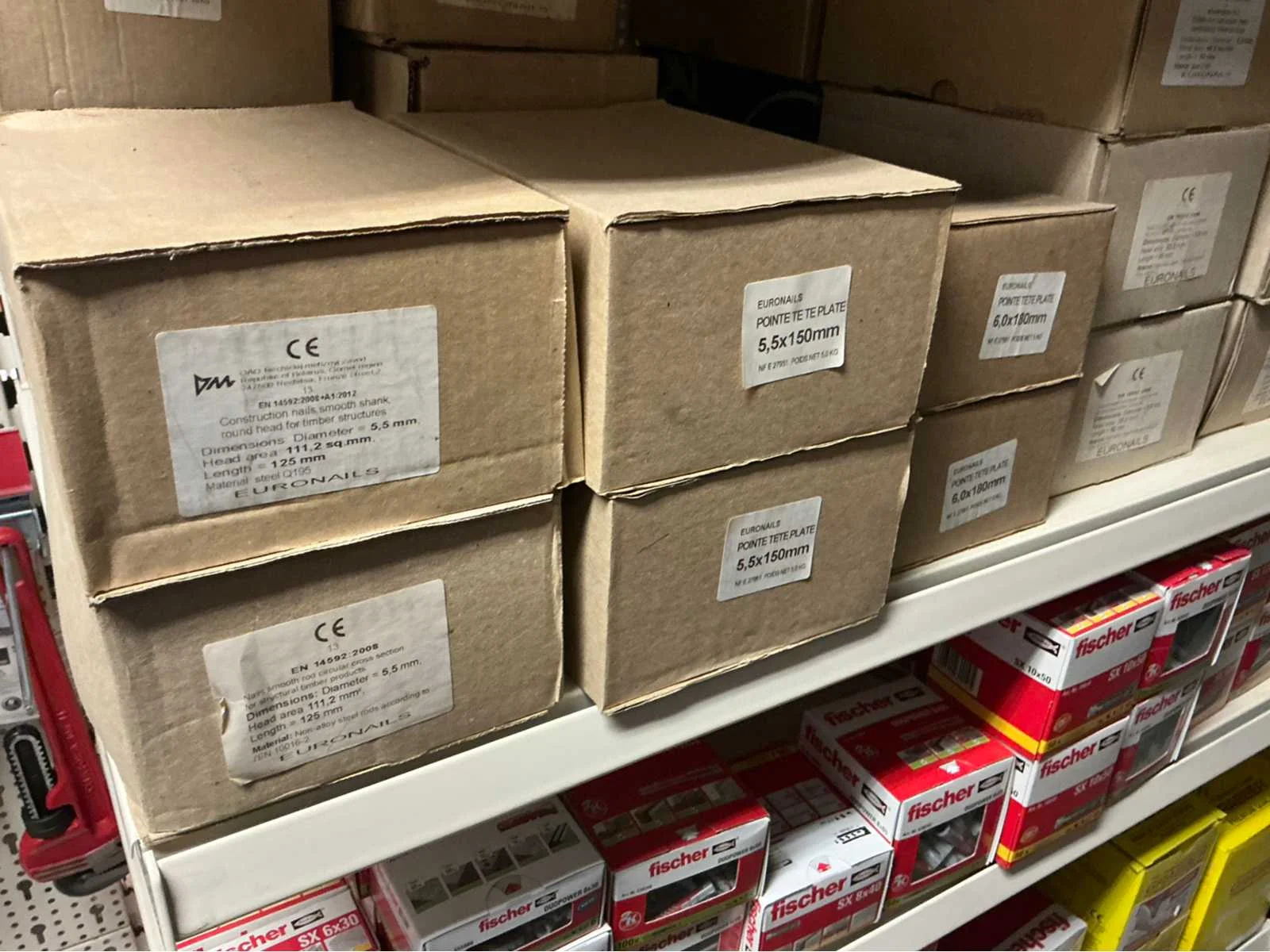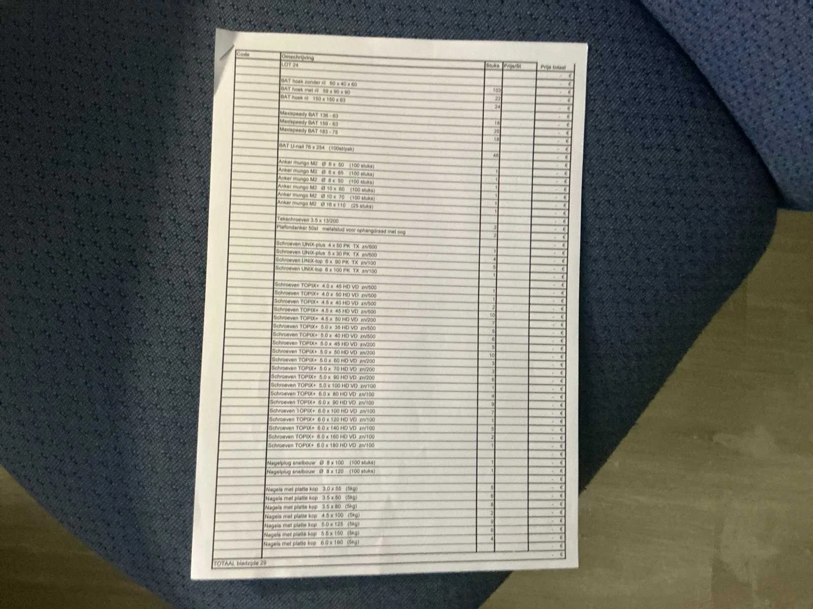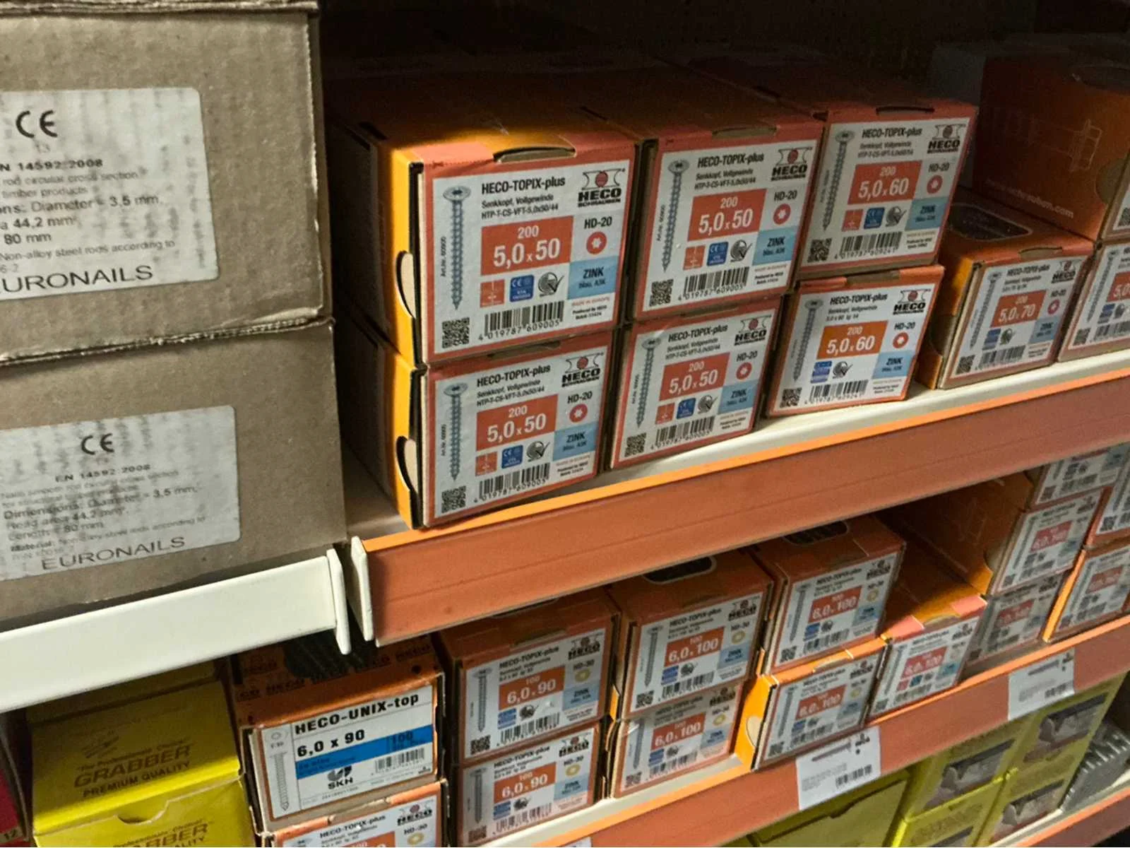 BAT hoek, Maxispeedy BAT, Tekschroeven, Plafondanker, Schroeven Unix-plus en Unix-Top, Schroeven Topix, Nagelplug snelbouw, Nagels met platte kop, Stalen nagels getemperd geribde, Nagelplugs, Schiekijzer en Gyproc vijzen grabbel BS metbits. Zie foto voor de aantallen. Nee Merk: Heco-Mungo