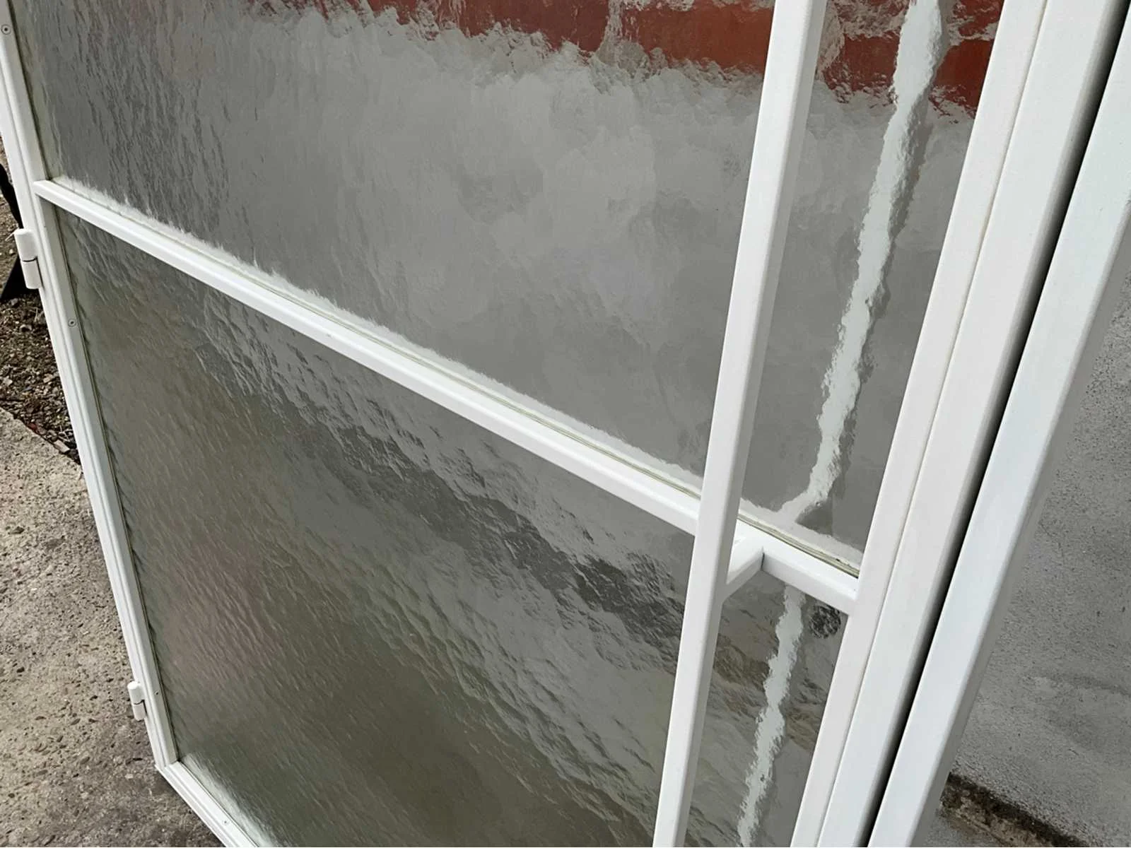 Industriële binnendeur in wit gepoedercoat staal (RAL 9005) - uitgevoerd met Katedralna veiligheidsglas (gebobbeld structuurglas) - Afmetingen 2375 x 1067 x 40 mm, links draaiend - Voorzien van stalen greep langs beide kanten en stevige paumelle scharnieren - Nieuw en nooit geplaatst - geschikt voor zowel moderne als industriële interieurs - mits vergoeding kan deze geleverd worden binnen België. Nee Binnendeur: true Beglaasd: true Afmeting h: 2375mm Afmeting b: 1067mm Glas: true Kleur: RAL9016