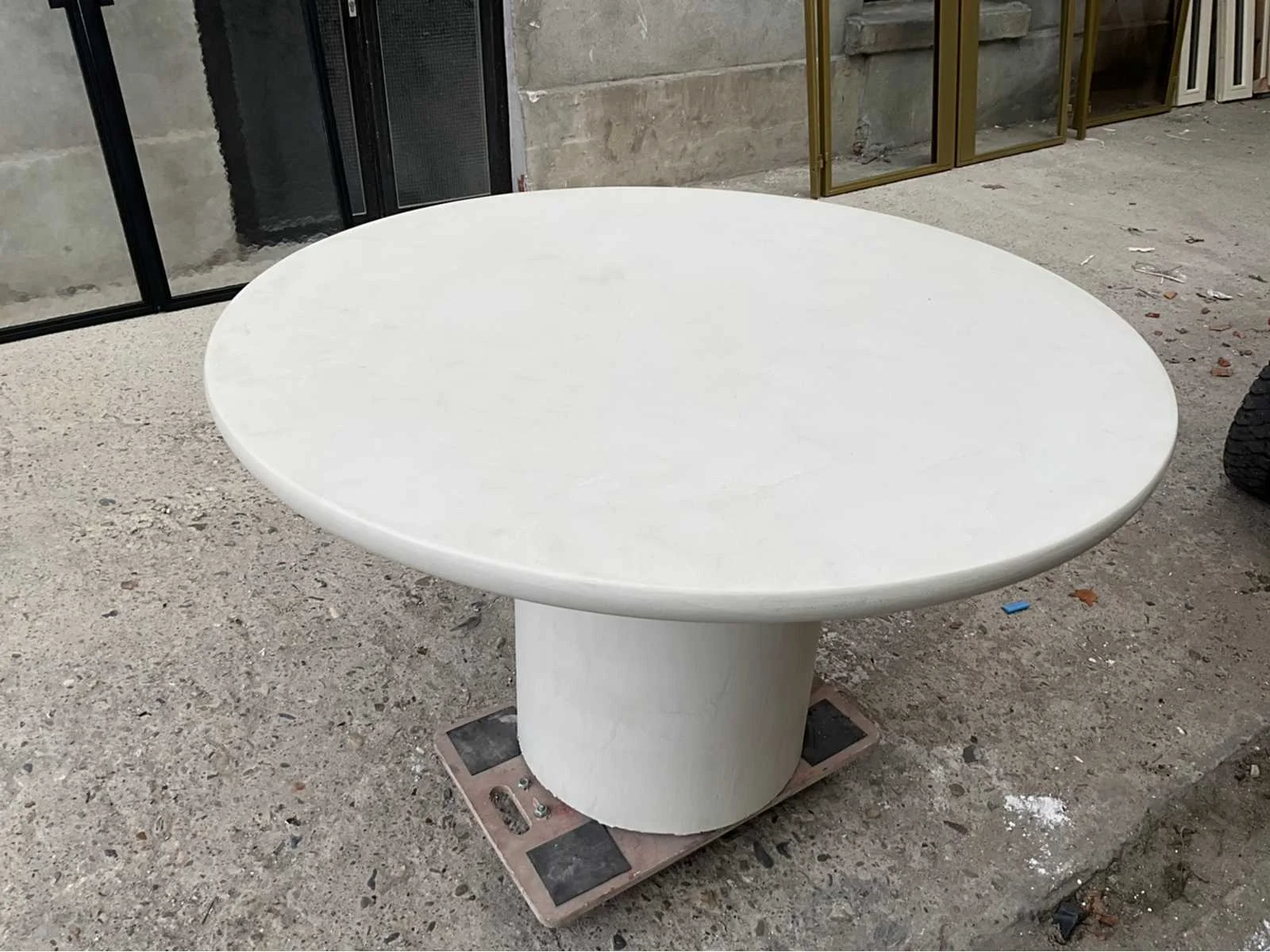 Ronde tafel met centrale kolompoot – beton ciré afwerking