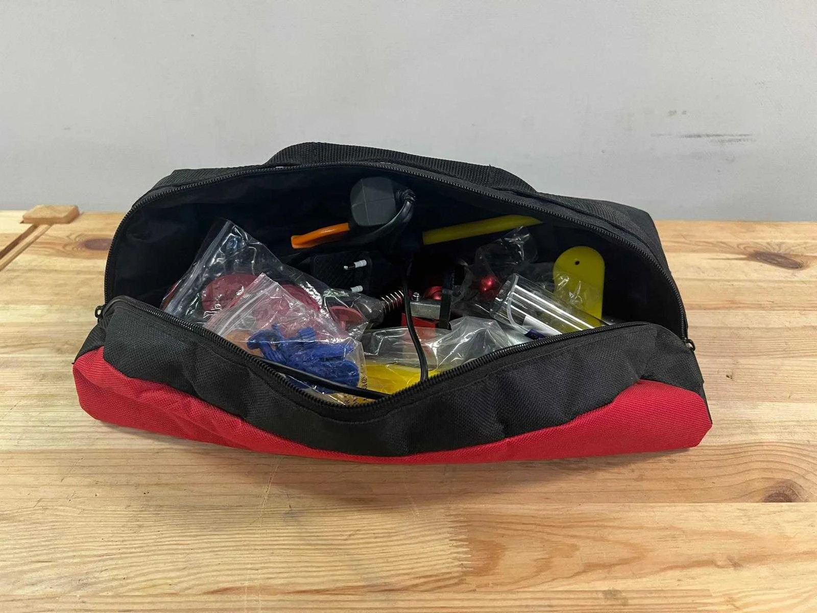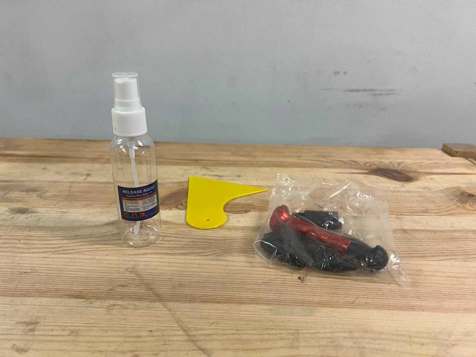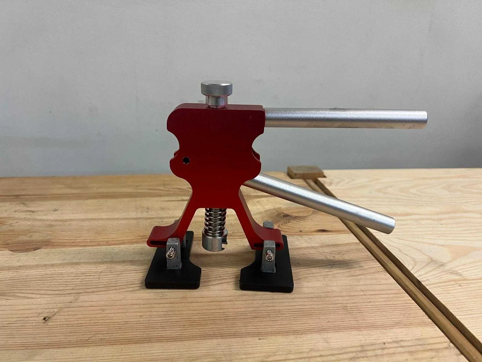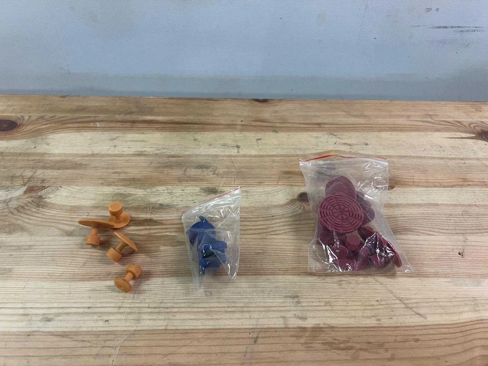 Complete PDR (Paintless Dent Repair) set bestaande uit: - Lijmpistool met lijmsticks - Trekinrichting (metaal) - Diverse trekpads - Spatel en hamertje - Reinigingsvloeistof - Opbergtas Ideaal voor het verwijderen van kleine deuken zonder lakbeschadiging. Compleet en in nette staat, werkend lijmpistool inbegrepen. Enkel de lijmsticks en bepaalde trekpads werden gebruikt. Nee Merk: HBM Machines