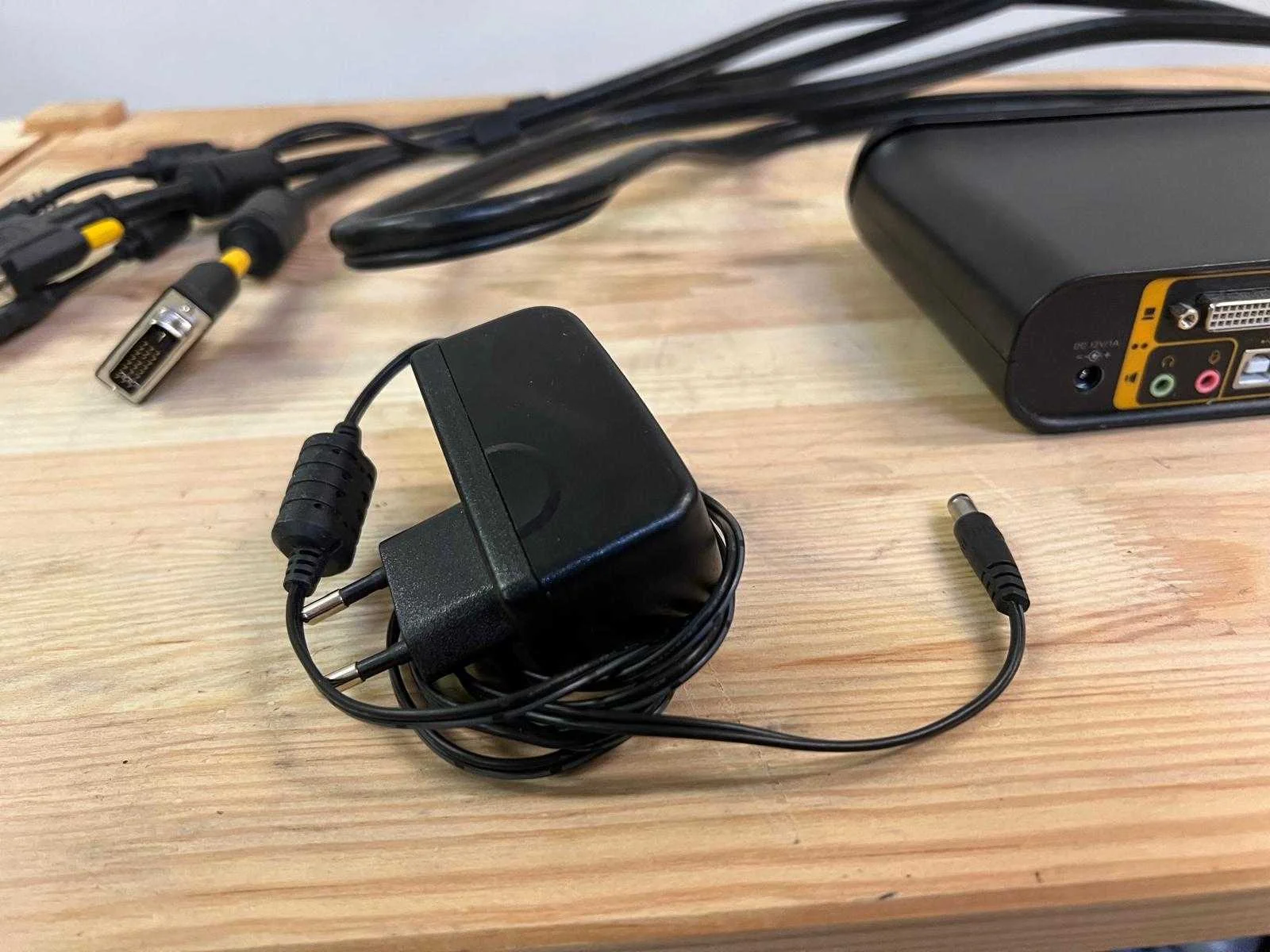 Belkin SOHO 4-poorts KVM-switch met DVI, USB en audio. Laat toe om tot vier computers te bedienen met één toetsenbord, muis en monitor. Inclusief twee complete kabelsets (DVI + USB + audio) en originele 12V-voeding. Kleurgecodeerde poorten (geel/groen) voor eenvoudige aansluiting. Ideaal voor thuiswerk of IT-omgevingen met meerdere computers. Nee Merk: Belkin Type: F1DS104L (of gelijkaardig – 4-poorts DVI/USB-versie) Model: F1DS104L (of gelijkaardig – 4-poorts DVI/USB-versie) Product type: KVM-switch (Keyboard Video Mouse switch) Transmissiesnelheid: USB 2.0 Kleur: Zwart Materiaal: Kunststof en metaal