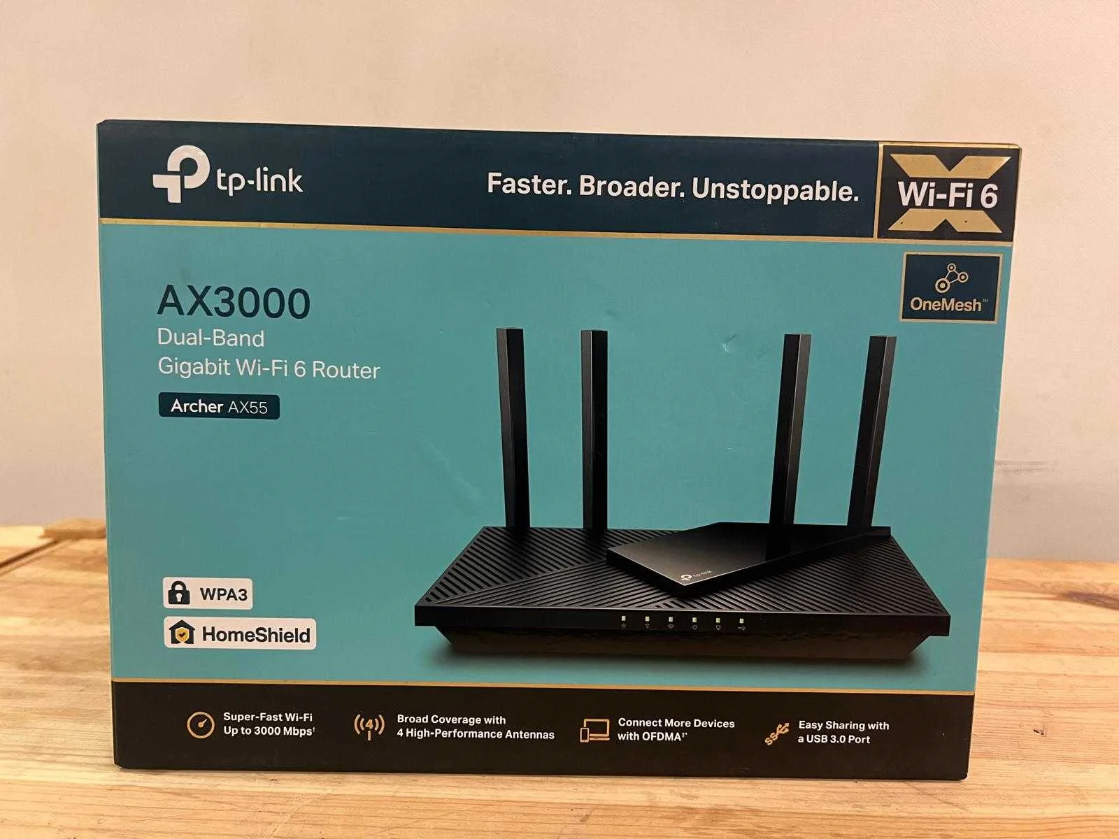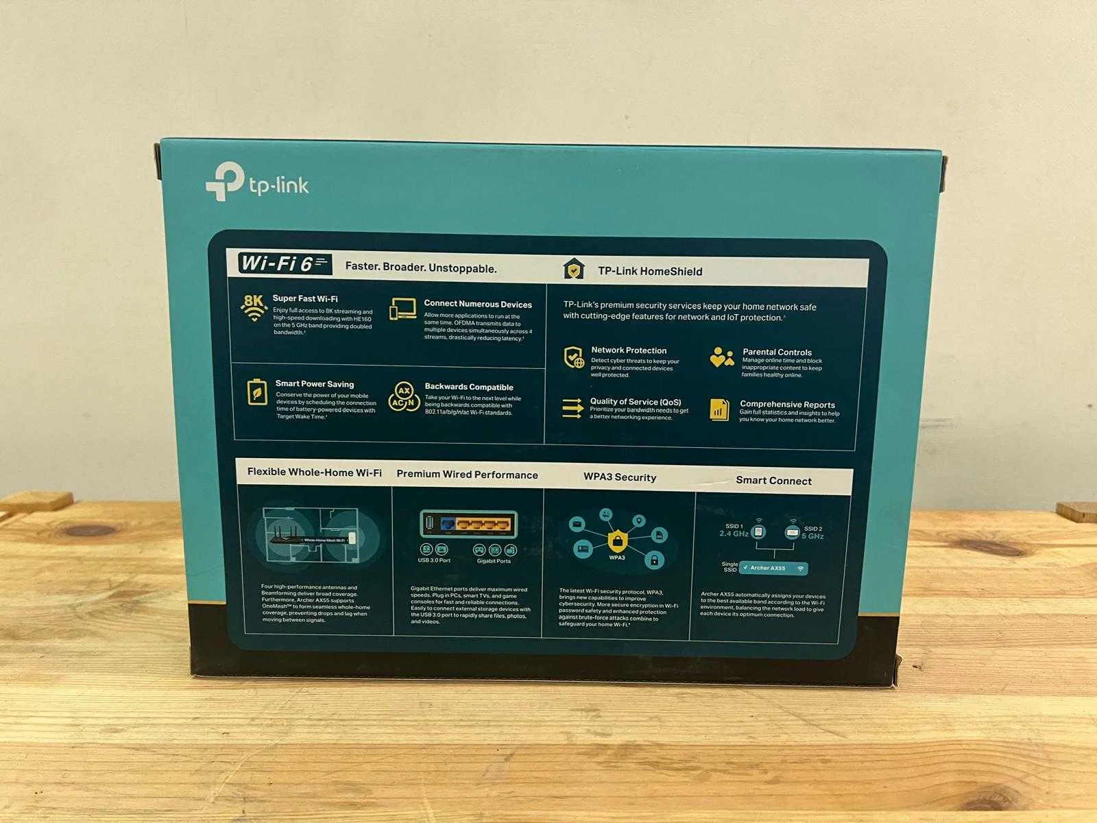 De TP-Link Archer AX55 is een Wi-Fi 6 (AX3000) dual-band gigabit router met 4 high-performance antennes, WPA3-beveiliging, TP-Link HomeShield voor netwerkbeveiliging, ouderlijk toezicht en QoS. Ondersteunt OneMesh™ voor flexibel whole-home Wi-Fi. Inclusief USB 3.0-poort voor bestandsdeling. Geschikt voor 8K-streaming, gaming en meerdere gelijktijdige verbindingen met OFDMA- en MU-MIMO-technologie. Nieuwe staat, compleet in originele verpakking met accessoires en handleidingen. Nee Merk: TP-Link Type: Archer Model: AX55 Product type: Router Wifi: true 5GHz: trueGhz Verbinding wlan: Dual-Band Wi-Fi 6 Transmissiesnelheid: 3000 Mbps Kleur: Zwart Materiaal: Kunststof Met voedingskabel: true