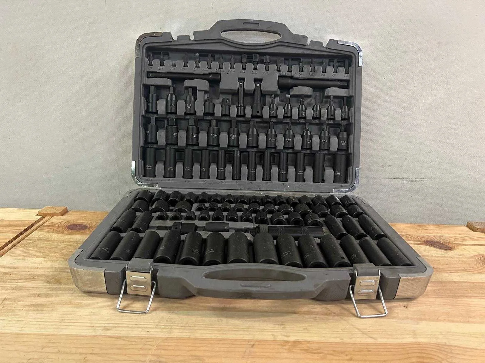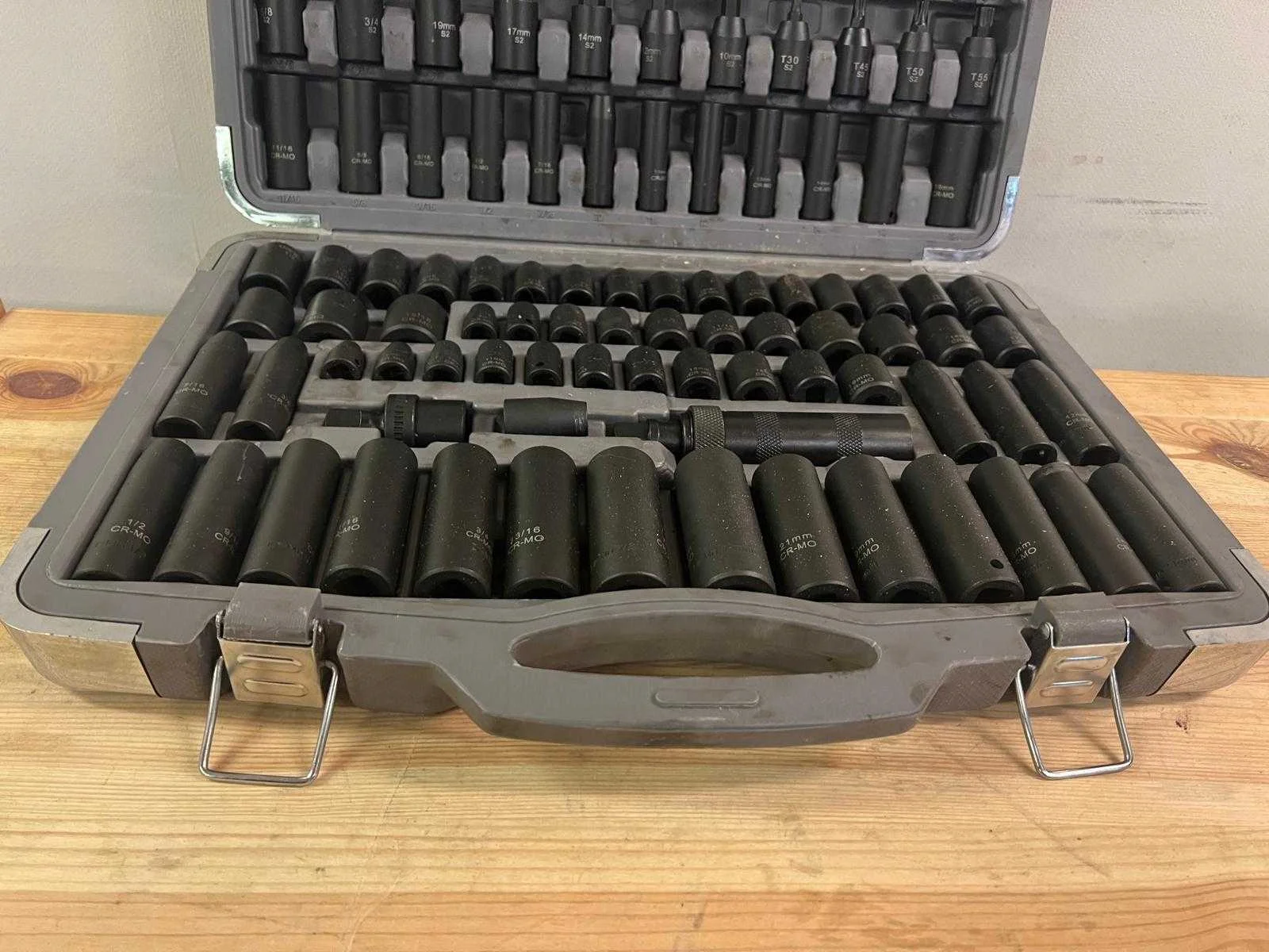 Professionele 119-delige doppenset met slagvaste krachtdoppen van chroom-molybdeenstaal (Cr-Mo). Bevat zowel metrische als inch-maten. Wordt geleverd in stevige kunststof koffer met metalen sluitingen. Geschikt voor intensief gebruik met slagmoersleutels. Set vertoont lichte gebruikssporen, volledig compleet, koffersluitingen in goede staat. Nee Merk: HBM Machines Met koffer: true Delig: 119 Opname “: 1/4", 3/8" en 1/2"'' Krachtdop uitvoering: true