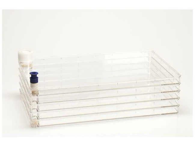 Save valuable space with Thermo Scientific™ Nunc™ EasyFill™ Cell Factory system. Each 10-layer, single-use system holds the equivalent of 36 T175 flasks. Save valuable space with Thermo Scientific™ Nunc™ EasyFill™ Cell Factory system. Each 10-layer, single-use system holds the equivalent of 36 T175 flasks. The linear multi-layer cell culture format is easy to use and promotes easy scalability, ideal for both research and commercial-scale applications. Features: 'Out of the box' system Large, vented screw closure Versatile port design for pouring and aseptic filling Benefits: Fill and empty five times faster than T175 flasks No accessories required with EasyFill Cell Factory systems To Get Started: Simply pour the media directly into the EasyFill Cell Factory system's large opening. Nee Merk: Thermo Scientific Nunc EasyFill Cell Factory System