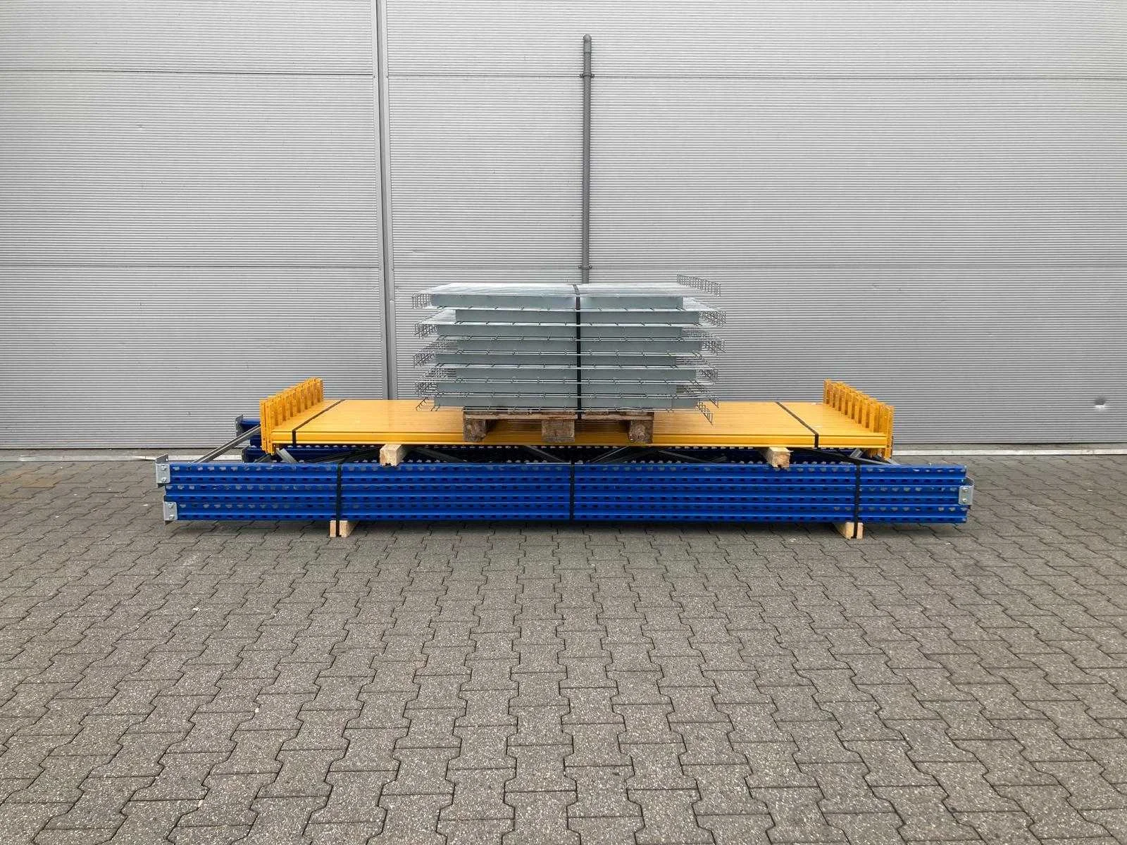 Wordt gedemonteerd en transport klaar uitgeleverd; Nee Merk: Jungheinrich Type: MPB Aantal secties: 2 Sectie afm. b: 2700mm Sectie diepte: 1100mm Sectie afm. h: 3750mm Aantal staanders: 3 Aantal liggers: 16 Demontabel: true