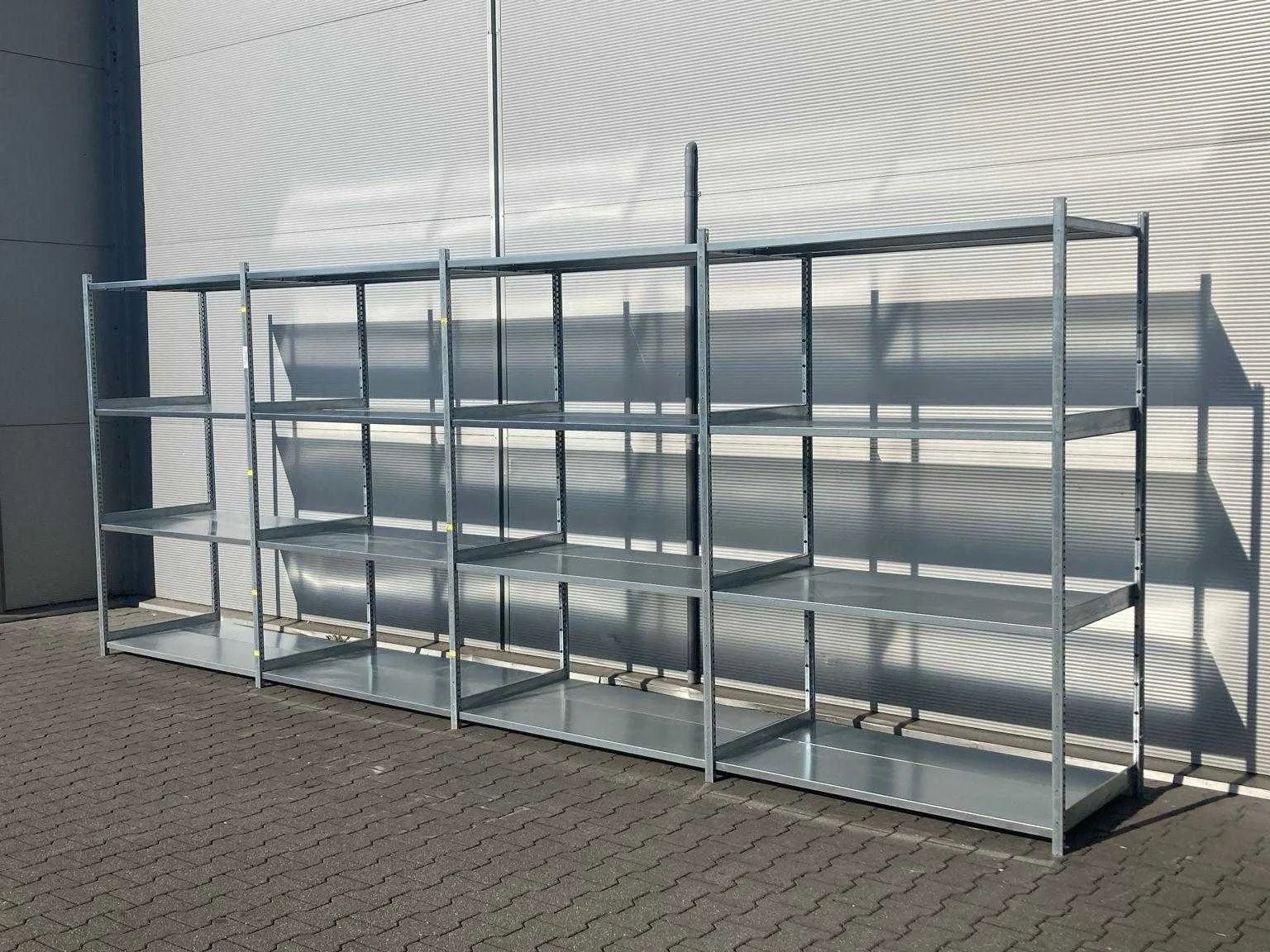 5x staander 2000x700mm; 16 legborden bestaande uit 2 delen 1280x300 en 1280x400mm; 7461*5/7462*16/7463*16 Nee Merk: GS3 Sectie afm. b: 700mm Sectie diepte: 1280mm Sectie afm. h: 2000mm Aantal staanders: 5 Aantal legborden: 16 Demontabel: true
