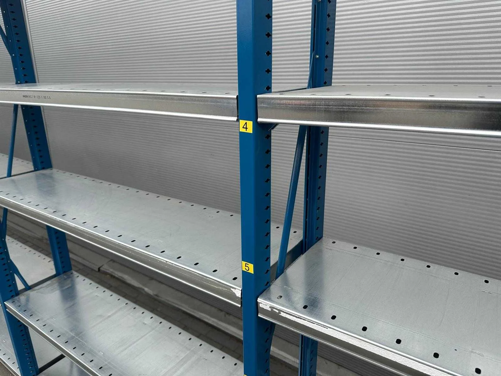 Gebundeld; Gebruikt; 6x staander 2200x300mm; 30x legbord 1200x300mm; 7327*6 / 7328*30 Nee Merk: Nedcon Sectie afm. b: 300mm Sectie diepte: 1200mm Sectie afm. h: 2200mm Aantal staanders: 6 Aantal legborden: 30