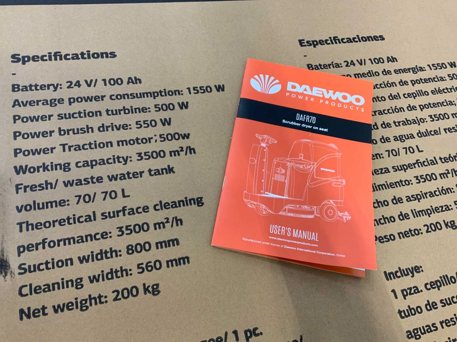 70liter;accu 24v/100ah;bedrijfs capaciteit 2500m2/h;borsteldruk max 23 kilo;digital bedieningspaneel;500w;5070 Nee Merk: Daewoo Type: DAFR70 Bouwjaar: 2025 Werkbreedte: 630mm Elektrisch: true Accu lader: true Aansluiting: 230V Eigen gewicht: 200kg Totale afmeting L: 1310mm Totale afmeting Breedte: 800mm Totale afmeting Hoogte: 1040mm