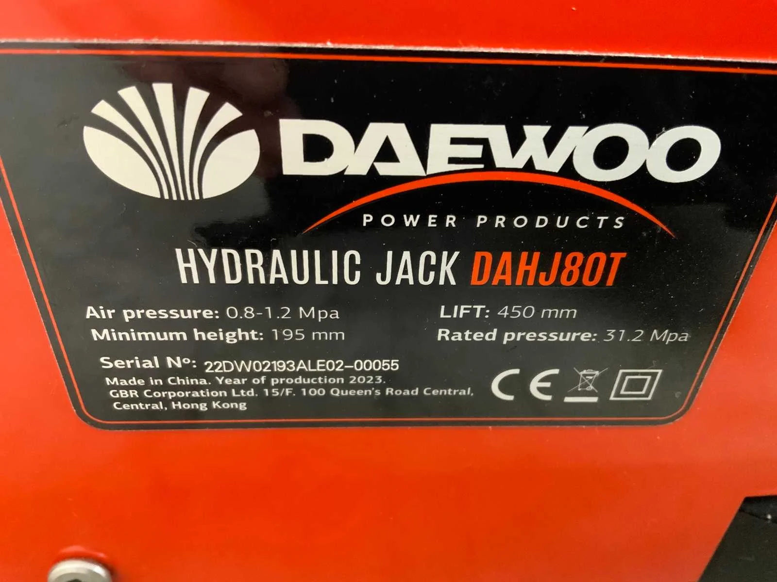 Max hoogte 420mm; min hoogte 195mm; 5636 Nee Merk: Daewoo Type: 80T. DAHJ Bouwjaar: 2023 Capaciteit.: 80.00t Eigen gewicht: 52kg
