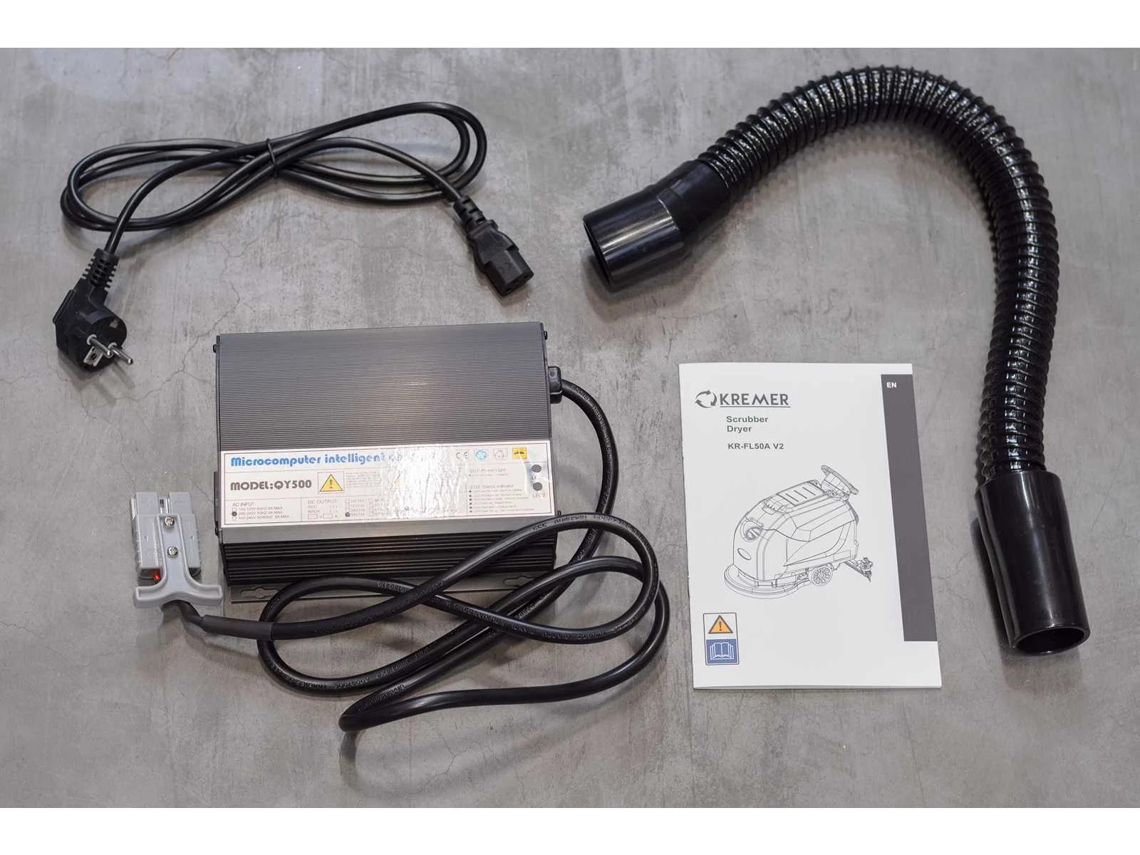 Zuigkracht 500w; borstelmotor 500w; borstel snelheid 175 rpm; tankinhoud 50+50 ltr; 2000 m3/h; met acculader; ongebruikt in doos; 2423; Nee Merk: Kremer Type: KR-FL50A Bouwjaar: 2025 Werkbreedte: 510mm Kilometerstand bij opname: 0hr Elektrisch: true Aansluiting: 24V Accu lader: true Oplaadbaar: true Eigen gewicht: 160kg Totale afmeting L: 1200mm Totale afmeting Breedte: 600mm Totale afmeting Hoogte: 1030mm